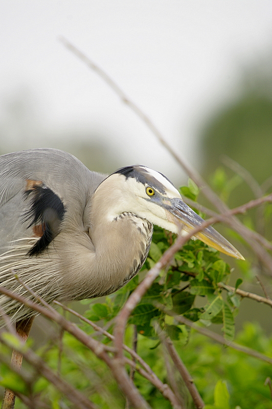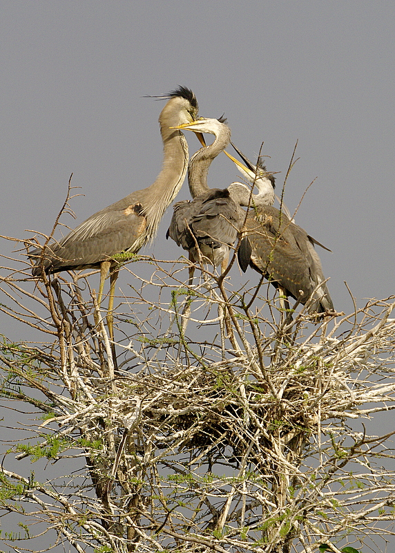 The Great Blue Herons ere feeding two almost fully grown chicks.