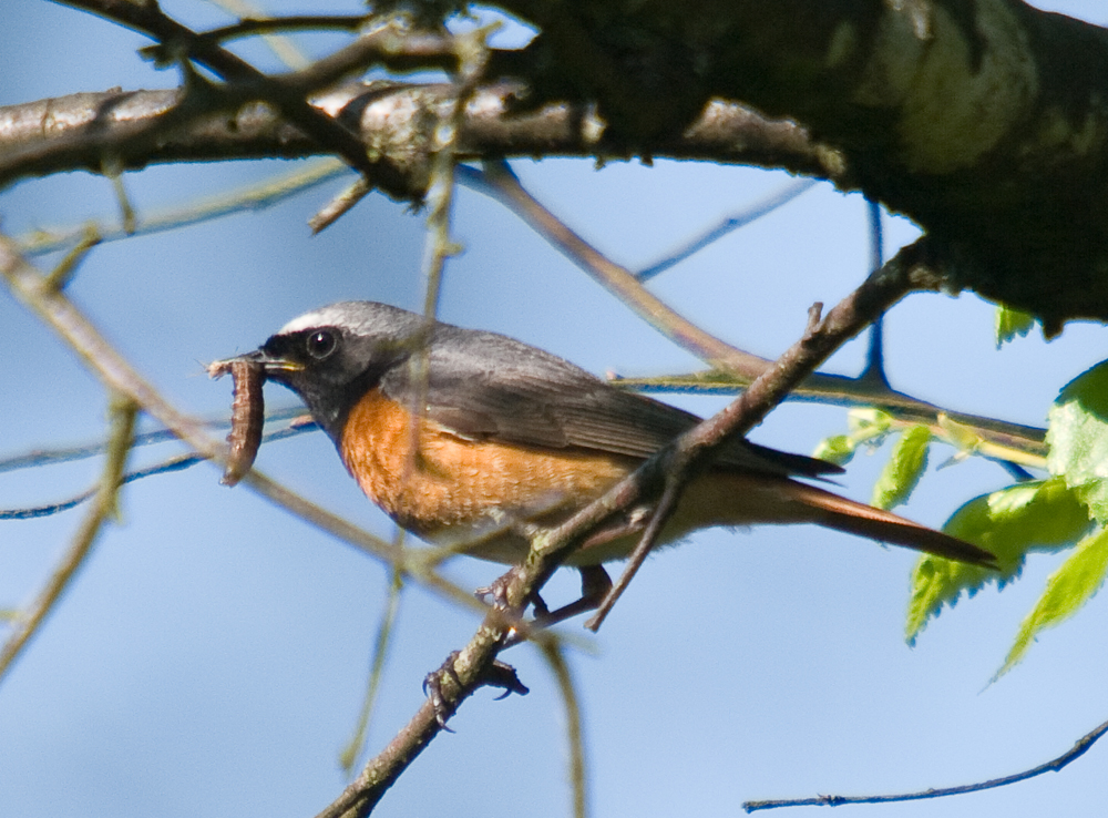 It goes without saying that I was successful as you can see the photos. I had sat quietly in an are that I knew contained Redstarts but was getting just a little bit frustrated that I hadn’t seen any. I sat on a tree stump and was reaching for the coffee flask when to my left, and close, I heard a bird calling which I identified the call, wrongly it turned out, as a Willow Warbler. They make this kind of single repeated call. I caught sight of the bird briefly and trained my lens on it, it was a female Redstart, stupid of me to get it wrong but I was pleased to say the least. The first of the year for me. Within seconds I had caught sight of the male, they are so stunning! Moving away seemed to be the best option because I guessed that I was near there nest. I was right because from a safe distance I spotted which nest box they were using. I made a decision to place the chair hide at a safe distance and waited. It didn’t take long and after 3 or 4 minutes the female was first to show her self.