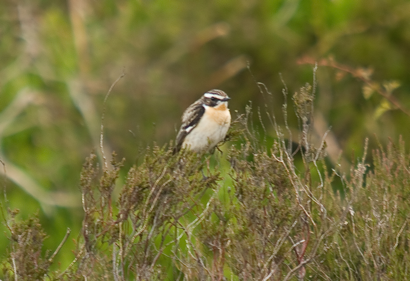 I did waste a little bit of time though pursuing a pair of Whinchats, the second sighting this year……. and well, you can’t resist that can you. I noticed that there was a true pair and it might just be that I have never actually seen a male in true breeding plumage before. As I arrived at the cuckoo tree there he was right at the top and I tried to get as close as I could to him. After a while he flew back over my head to his mate and it gave me the chance to study them both together and note how much more brightly coloured the male is. As I sat in the hide some 30 minutes later he came back on to the top of the tree and I was waiting for him to turn his head in a good photographic pose but unforunately he never did and I cursed as he flew off knowing that I had missed a really good photo opportunity.