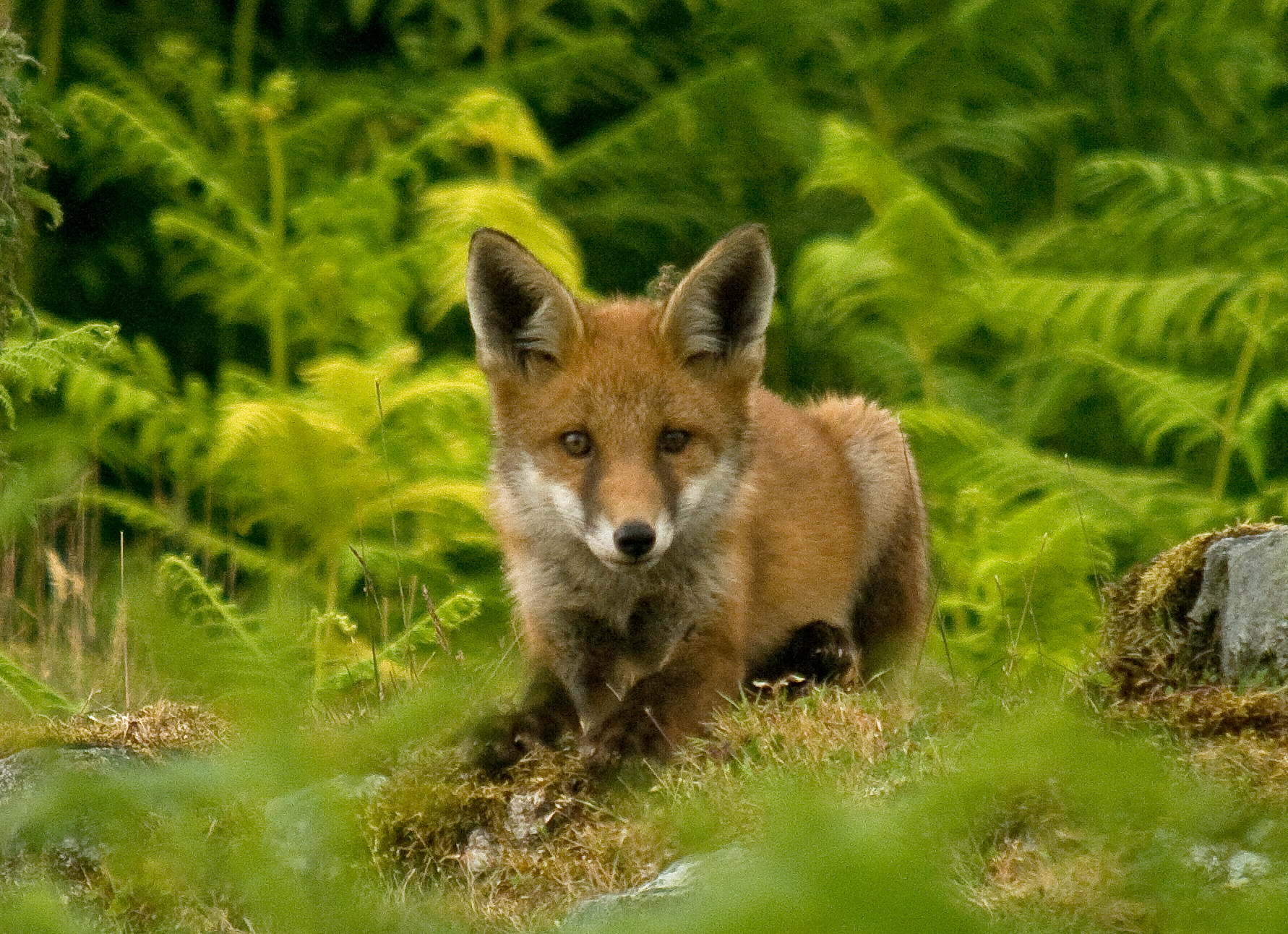 Having now taken a few reasonably good shots I tried to get even closer but the fox was having none of it and immediately got up from his relaxed position and disappeared down off his little lookout spot and in to the bracken behind. What a lovely animal it was, very appealing and attractive with piecing dog-like eyes and a rich red coat. I looked around at the sight it would be getting and thought how lucky he was to live in such a nice place. Lots of food around with a Rabbit warren below, berry laden bushes beetles and the odd bird now and then. I would guess that they are not particularly persecuted now that the hunting ban is in force and hope that farmers don’t go out of their way too much to shoot them. Surely it would be worth the odd lost chicken to share your environment with a beautiful creature like this.
