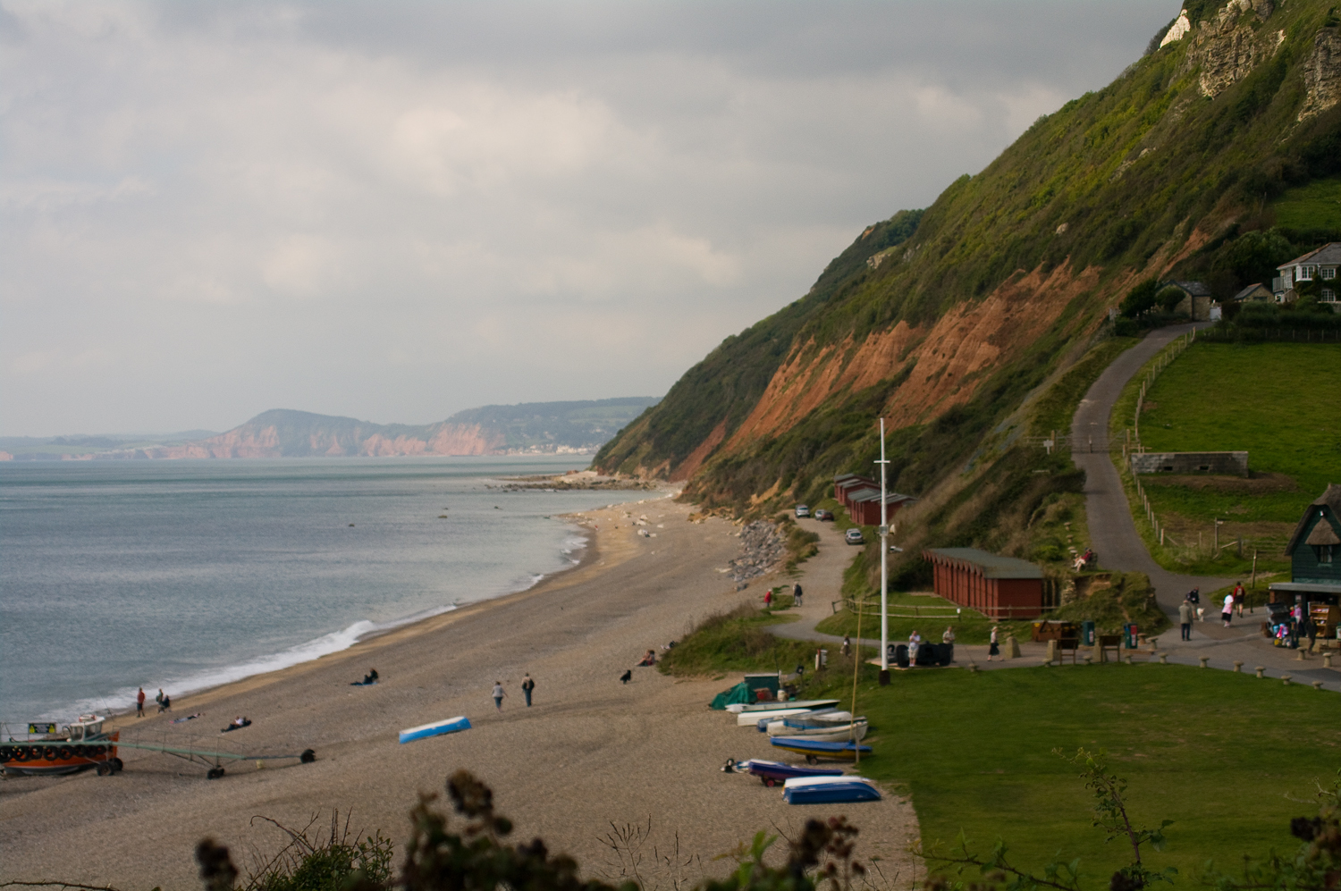 This is a Motacilla wagtail seen with others on the cliffs at Branscombe today. I guess it could be a Pied Wagtail – Motacilla Alba yarelii but my instinct is White Wagtail. I know that they are confusing and hard to separate at this time of the year but it appears to be grey backed with a very white face. if you know either way then please let me know. I thought it would be good to post it after the Grey Wagtail over the weekend.I also saw Northern Wheatear and massive flocks of Swallow and Martins passing through on migration as well as a Kestrel and one Buzzard. If you are wondering what all the fuss is about Branscome then perhaps this picture will help you to appreciate why we all love it here.