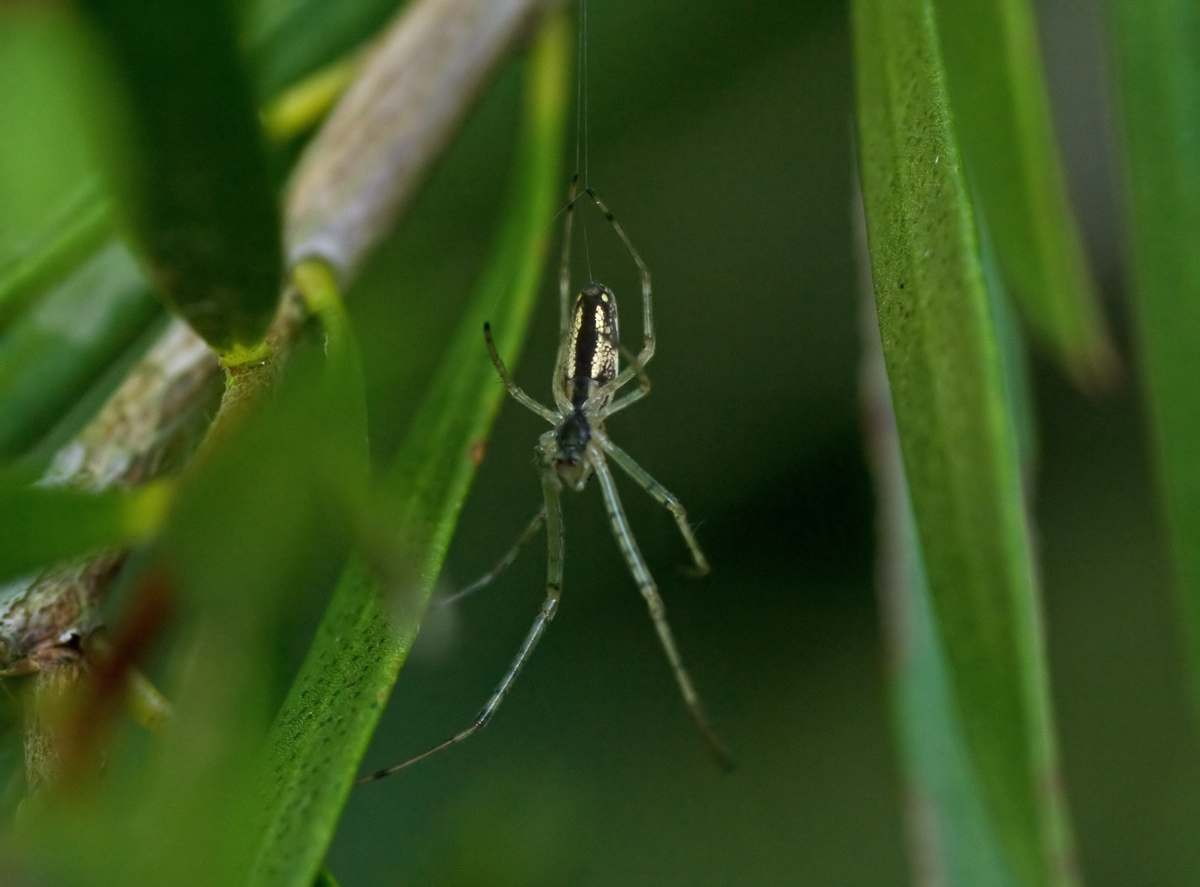 This spider, a Long-jawed Orb-weaver, Tetragnatha species was in the garden on Sunday and is a juvenile I am told.