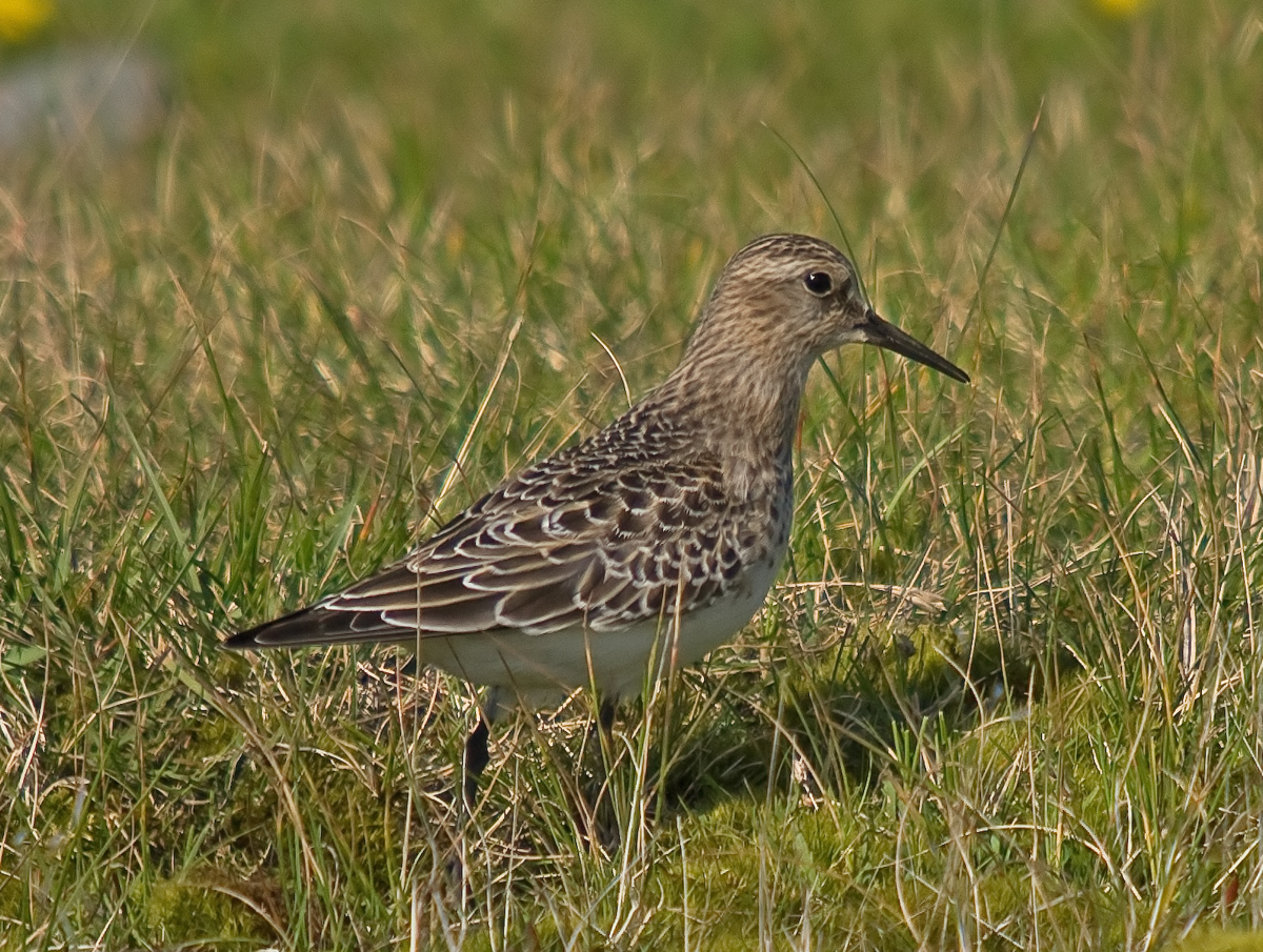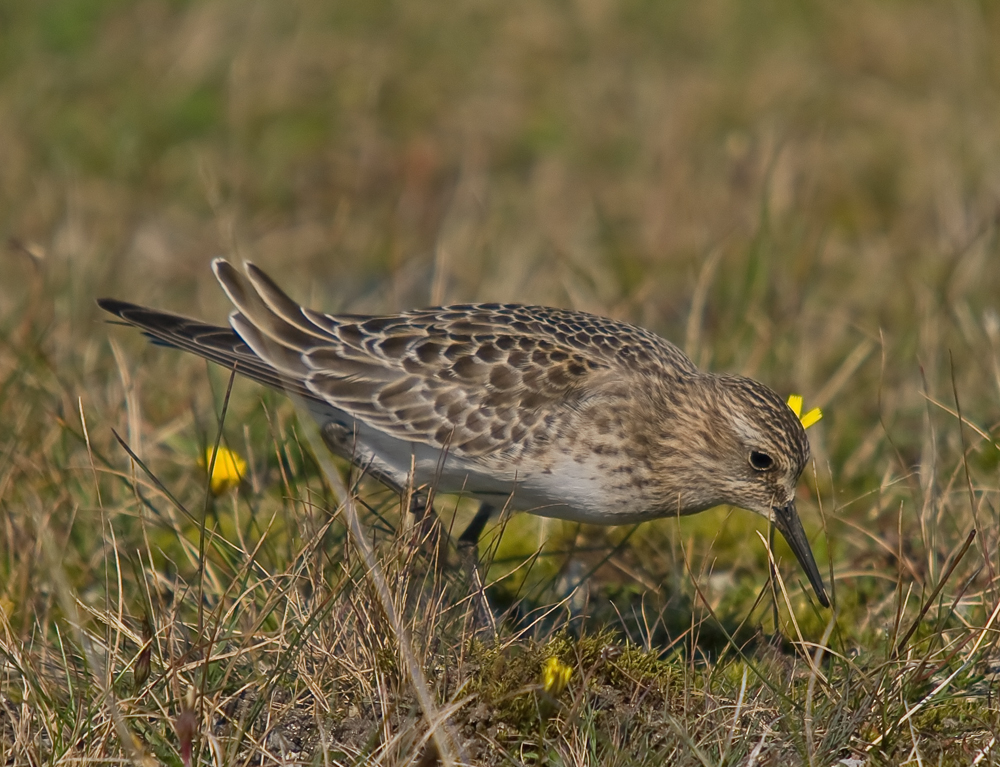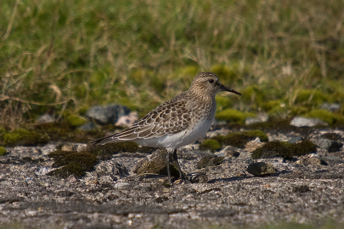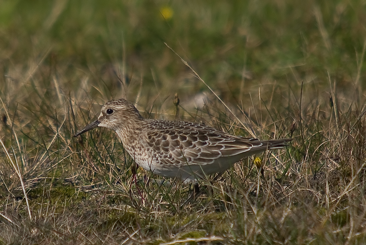 I am finally starting to get back to somewhere approaching normality. Today, after all the activities of the last few weeks which has included the birth of a granddaughter, my other son’s wedding, a broken collarbone and subsequent operation and a visit from my sister from the USA, I was free to birdwatch. I decided after dropping my wife to do her shift on the neonatal unit, to travel to Davidstow Airfield to see if I could get a look at the Bairds Sandpiper seen there recently. It was just 50 miles from here so not too far. When I eventually got there, I drove on to the field which is now common land and searched the grass in between the defunct runways for even a sign of a bird. Needle in a haystack sprang to mind but after a bit of searching and detective work, that is basically asking other car inhabitants I found a little group of Dunlin and Ringed Plover and was happy taking some great photos. Suddenly this group was joined by what was obviously a Bairds Sandpiper. lighter, more distinctly marked and well, just so clearly different to the Dunlins which I was afraid I would confuse it with. Using the car as a hide I took shot after shot and got a few that made me happy. In the knowledge that a picture speaks a thousand words here a some of them. Take a peek at the map and you can see that the bird’s usual range.