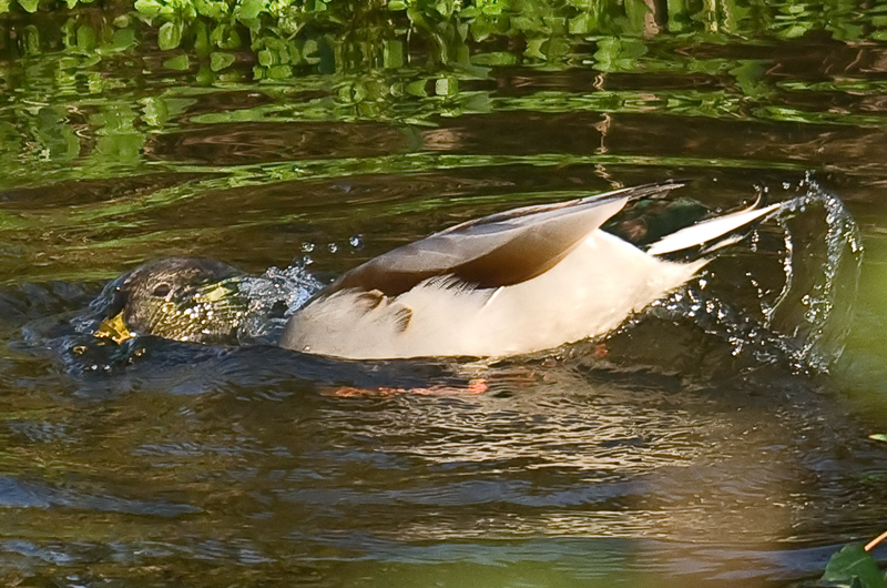 During this interesting session, the Little Egret did a spot of fishing and I watched him/her catch and eat a small fish but unfortunately he did not show well enough to get a good photo. There is also a resident pair of Mallard Ducks. I thought that this was an interesting shot of the drake bathing.