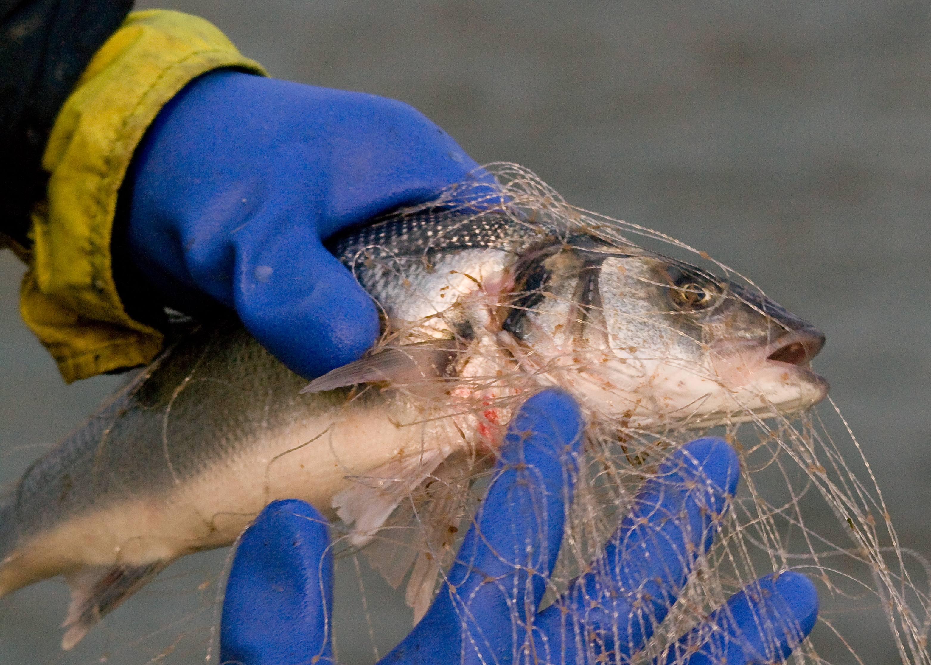I have talked before about how I enjoy visiting Beer, the birds are good and the atmosphere and ambience is superb. Over the last few days I have made the acquaintance of the professional fishermen who work their boats from the small beach. They are very nice and friendly and have been really welcoming to me when they have seen me for the second and third time. I really admire the way that they are making a living from the bay with their small boats and a few nets, in just the way that people have been in England and all around the world for thousands of years. I was invited, well in actual fact I invited myself to go out with one of the fishermen, Jim, to haul in his 4 gill nets that he strings out in and around the bay just off Beer Head. The nets, 100 yards long, are laid between anchored buoys and left for 24 hours before they are hauled in. So at the crack of dawn I left home and travelled to Beer to join the boat, which is relatively small at only 18 foot long or so. As we made our way out, the weather was gloriously sunny and the sea flat calm and there was a degree of anticipation and excitement in the air. Jim, the skipper, detoured a little to look at the sea birds on the cliffs and we chatted about birds and wildlife that he has seen over the years. He told me of a Basking Shark seen in the summer and of Porpoise seen in the spring months. We spotted a seal and waited for it reappear, it never did though! By now we had arrived at our first net and began to haul it in. To my utter surprise it was very fruitful and contained Bass after Bass, some quite sizeable at 3 to 4Ilbs with the odd one even larger. There was a Cod in the net which was a surprise to Jim as this net was quite close to the shore and had been placed to deliberately target Bass.