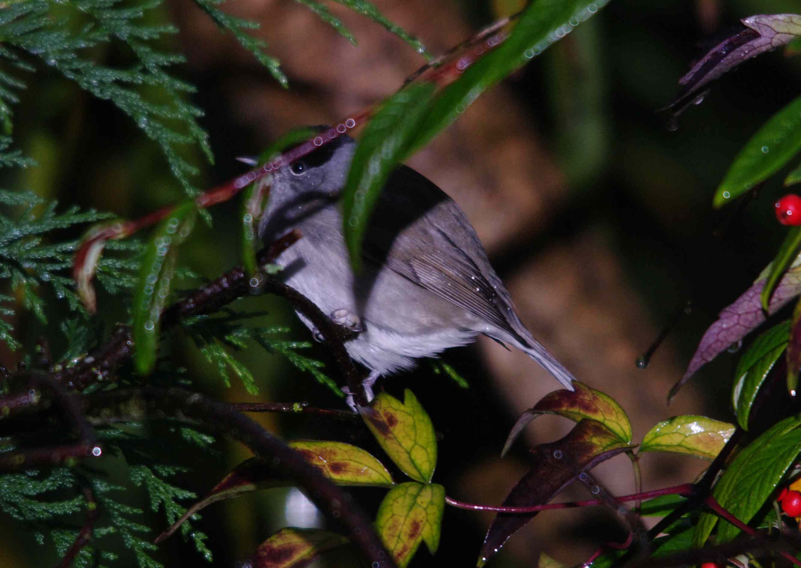 Today is dismal with heavy rain and very overcast dull conditions, in spite of that we have had some Blackcaps in the garden, a male and female. The camera was getting just a 30/sec at ISO 800 so I tried the flash and took a few shots of the male just to record his presence. Again not a very good photo, well below the standard i usual try top achieve but in these dreadful, dreadful conditions the best I could get.