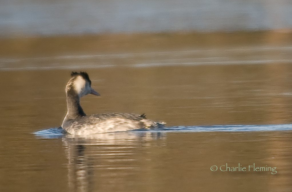I have to say that I am a fan of Great Crested Grebe and always enjoy seeing them. Today it was really cold as I sat under the cover but I think if I had applied myself a bit more , eventually at least one of the Grebe would have drifted very close to me. As it was, one almost did and I took a few photos which I am really pleased with, again considering the distance. This first one is nice but it's a real shame about the noise on the image which gives it a grainy effect and slightly detracts. But you can see that in the summer with really good light, I am convinced that I will get some glorious images.