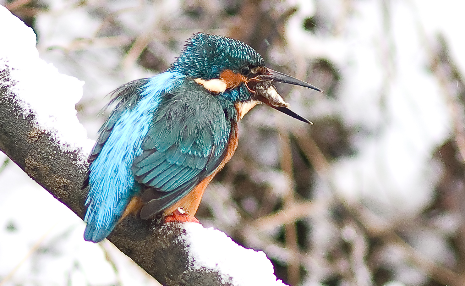 He is eating a Bullhead sometimes known as a Millers Thumb – Cottus gobia. The light was not too bad and I used my Pentax 200 lens so that I could get a satisfactory shutter speed. Photos in the snow are a whole new world for me,but even though it could be better I am quite chuffed.