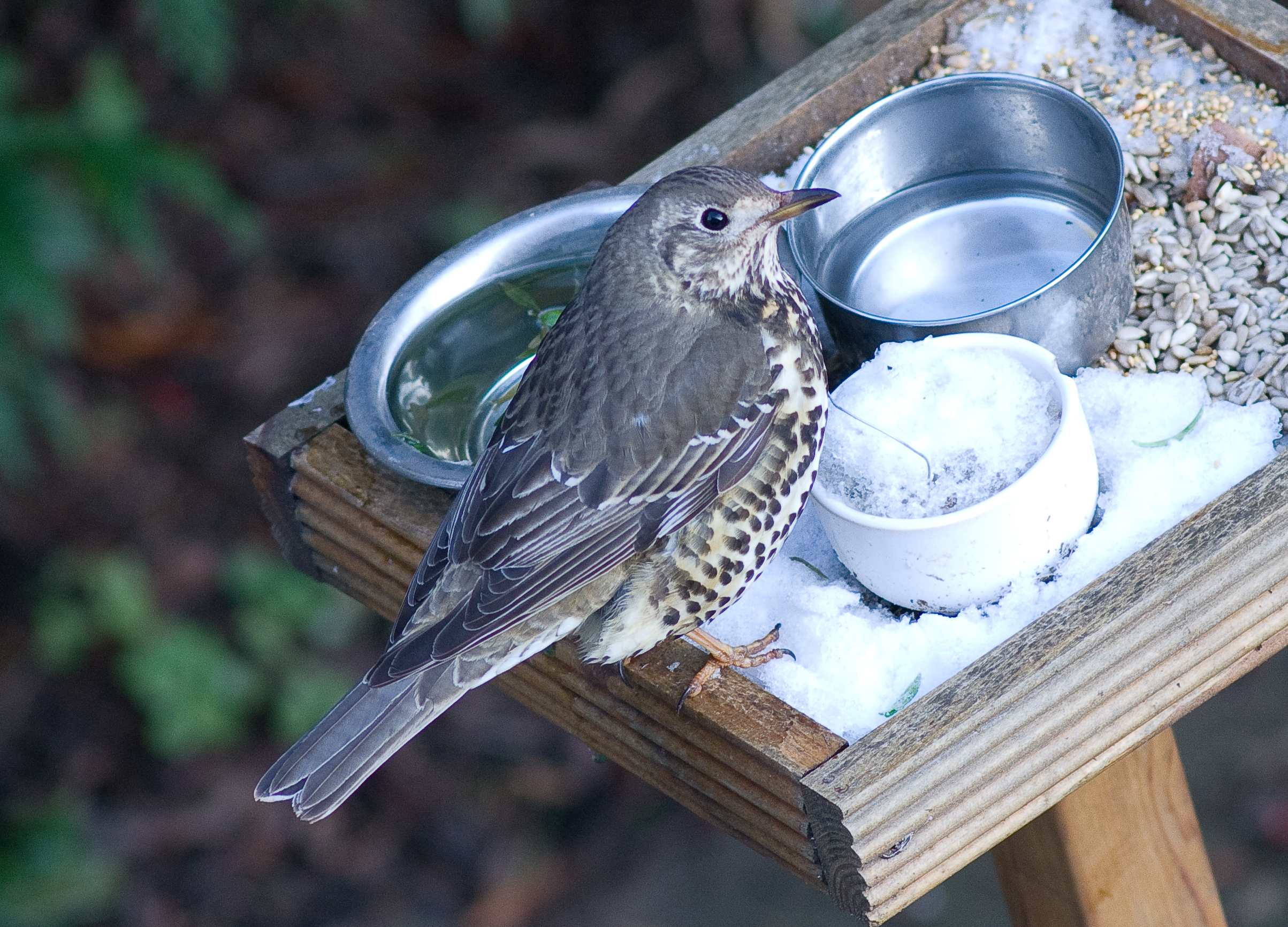 I have already posted today but I do need to record the Mistle Thrush that came in to my garden this afternoon. Mistle Thrush is a garden first, and we have now had 5 of the UK's 6 species of Thrush in the garden in the last 2 days. Along with the Fieldfare below, here at the same time, they were both a delight to see. The district here is pretty much alive with mixed flocks of Thrushes. From an upstairs window I watched them swooping and whirling around the gardens nearby in a search for berries. These flocks of hundreds have moved in off the nearby fields and local countryside to feast on the ornamental berries in Alphington gardens. I suspect that this is probably happening all over the country. If this weather persists there won't be a berry to be had anywhere. It is going to be interesting to see what happens then? As far as Fieldfare are concerned, we have had a few in the garden already this winter but never showing as clearly and boldly as this, an obvious sign of hunger and "food" stress. On that subject, late afternoon I almost stepped on a Pied Wagtail – Motacilla alba yarellii in the street. He was obviously in a bad way, not finding enough to eat in these really cold conditions and I doubt if he was going to make it through the very long cold night.