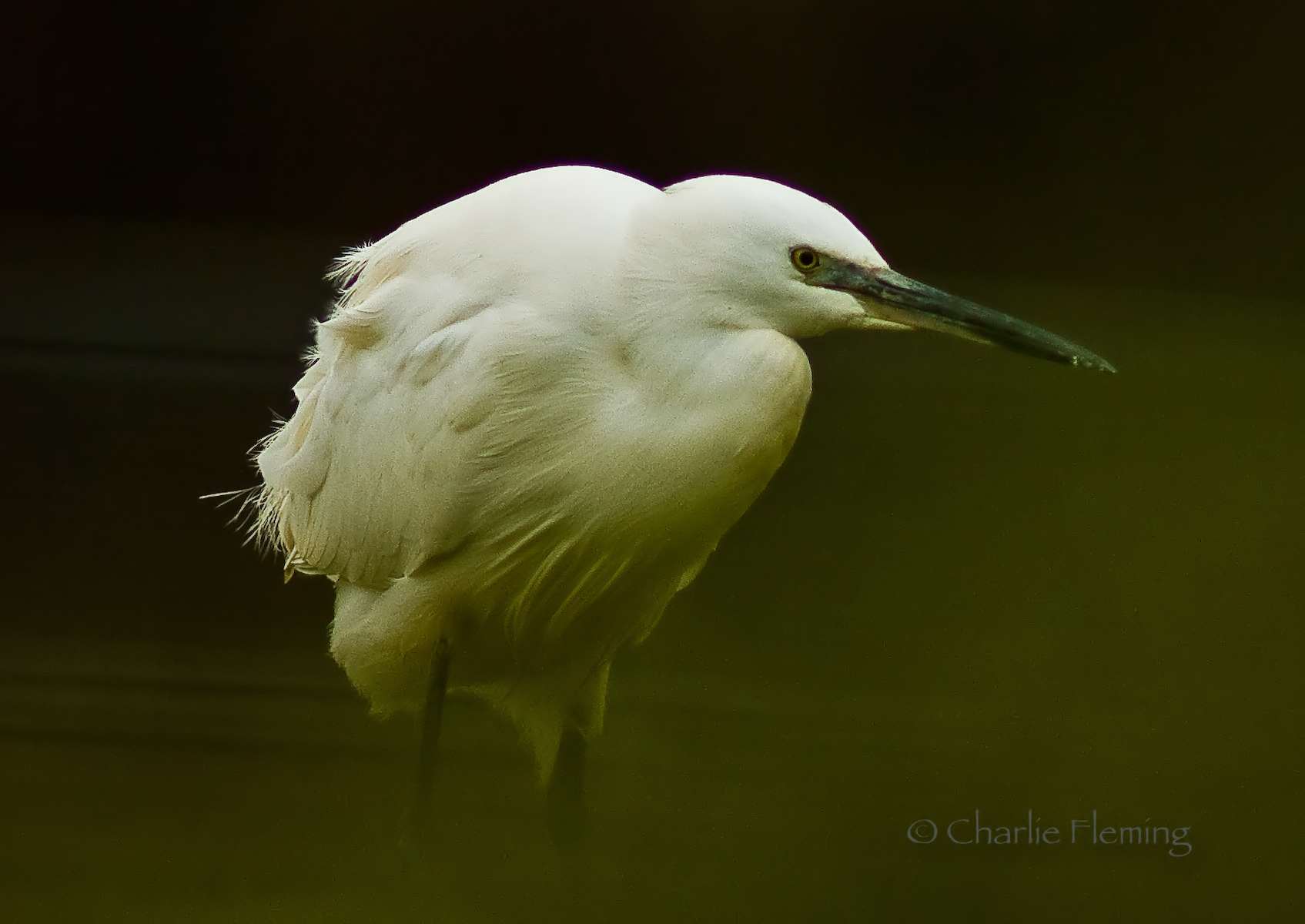 A cold, wet and dreary day with little to excite me except the Kingfisher from the hide this afternoon. He suddenly appeared in front and tried to land on the perch in the strong wind but comically, he missed and had to do a regain before he landed and ate his fish. This shot is not my best, slightly blurred with camera shake. It was "hand-held" because the camera was obscuring my vision out of the hide. I tried it this way as an experiment. I won't be doing it again because it was not successful. While I waited, the Egret again walked up the bank towards me and the free Sprat offerings. Unfortunately though, a Black Headed Gull had got to the fish first and very grateful he was I'm sure.