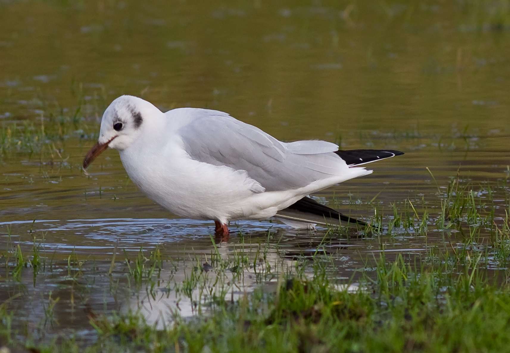 Black Headed Gulls are not particularly noteworthy but if you were visiting from the other side of the Atlantic I am sure you would give them a second glance. In fact, they are quite attractive. They have an eclipse plumage and in the winter time look completely different than when in summer breeding plumage when they have an attractive chocolate coloured head.. For most of the time they do not show the dark head but instead have a hint of a smudge of dark behind the eyes. Other gulls in the UK with black heads could be Little Gull or Mediterranean but 99.9% of the time it will be a Black Headed. They are an "inland" gull and though found also at the coast, they are the UK's most numerous inland gull. This one was by my hide on the Alphin Brook today, one of a small group of a dozen or so that have been here for the majority of the winter. They feed on anything they can find, I have no idea what they are finding to eat here but they forage in the large puddles and through the muddy grass left by flood water. They also take small particles of food from the surface of the brook and anything else that has been left around as rubbish. Gulls are often derided for rifling through rubbish but you could suggest that they do a good job of getting rid of edible rubbish which could attract more undesirables such as Ratus ratus, the Brown Rat…… nobodies favourite. I notice one article that I read describes them as kleptoparasitic. a posh Pseudo scinetific word for, "it steals food from other birds"! It quite often breeds in colonies made up of both Terns and Gulls and not only eats the young newly hatched Terns and eggs but also the food that the Terns have caught for their chicks…… that's the kleptoparasitic bit. In return the Terns benefit from the protection from predators, both in terms of mobbing behaviour and alarms from the Gulls.