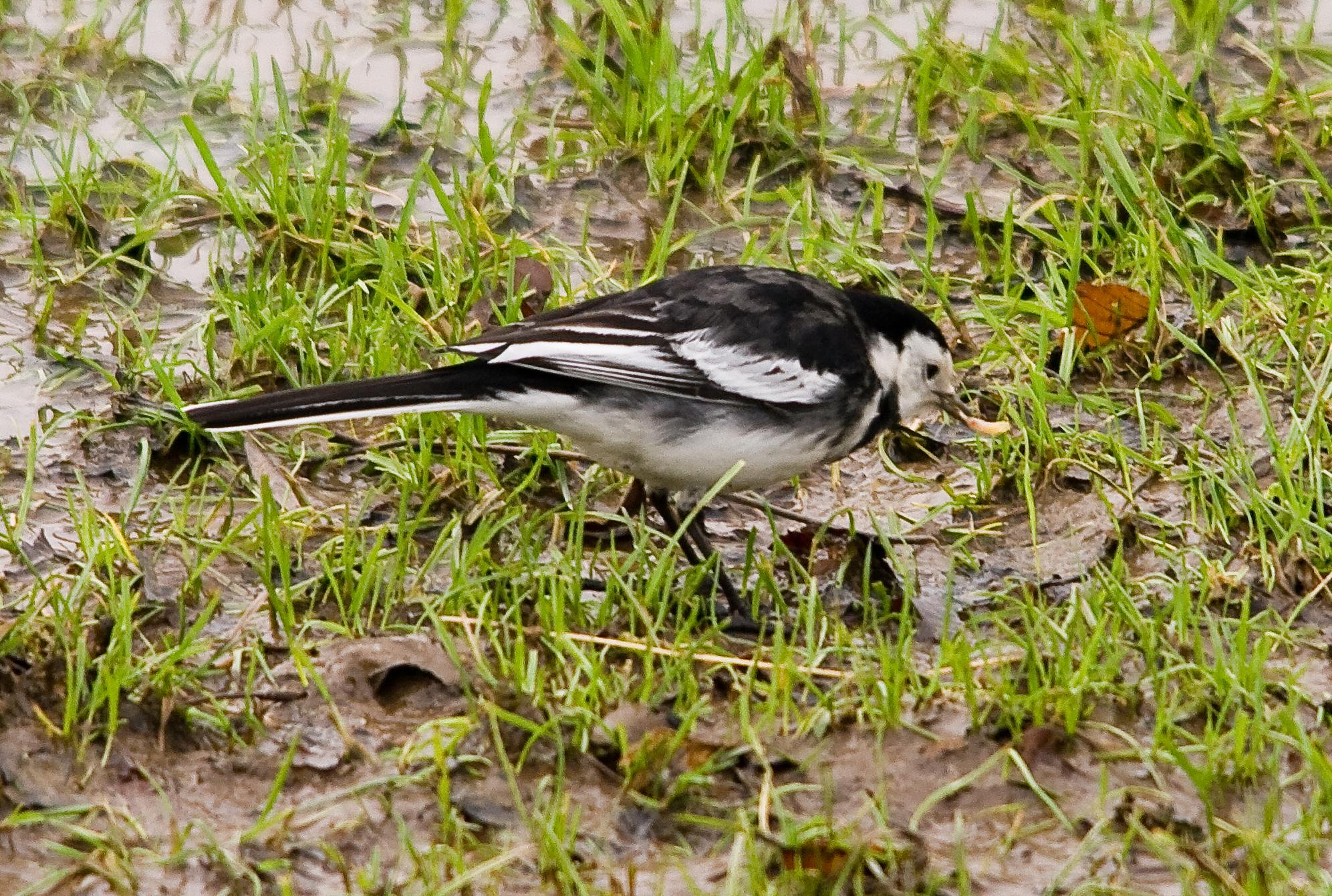 This pied Wagtail was eating some quite large juicy looking grubs which he was getting from the surface of the recently puddled grass. I will be having a look to see if I can ascertain what these grubs are, I will need to find one first though, may not be easy.