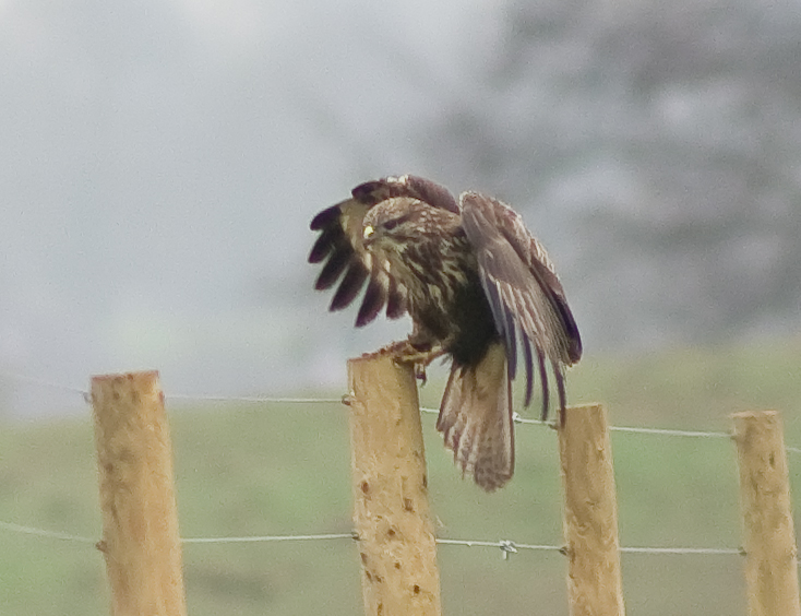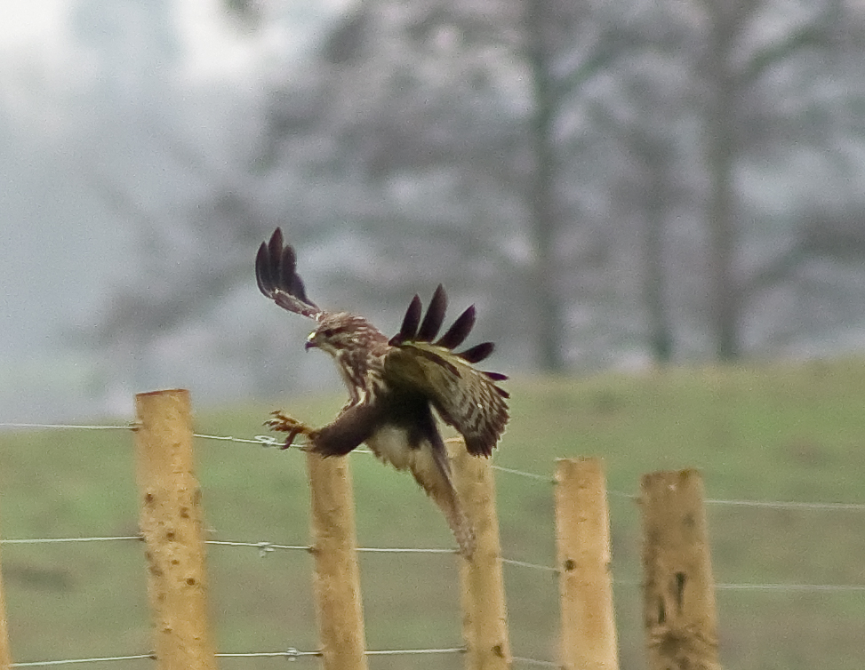 As you may have heard me say if you know me well, or perhaps even from reading the Blog, I have been wanting to get up close to a Buzzard for ages. At last, with a bit of careful thought and a considerable amount of effort, which has involved building a very natural looking hide, I have almost achieved it. Today the weather was as miserably cold and overcast as you could get and yet I spent a great couple of hours in the hide trying for both Raven…….. a no show today……. and eventually, after two hours, the Buzzard. Today was more about study than photography and I observed some interesting behaviour. He was up to his old "worm-eating" trick and I watched him for ages as he spotted the worms on the bank from the post in the pictures. In fact, in the sequence, he is just flying up from the bank after eating on the ground. He, or she, is a magnificent bird with a massive wingspan as you can see. At one point he was quite close as well but honestly, the light was so bad it was really frustrating. But what a taster for things to come. I have been working out a strategy for getting really close to him, watching where his favourite perches are and which posts he favours etc. When I have watched him for a few more days I will have been able to work out his routine and then I can make my move for that real good close up. In the mean time , I may just get lucky and he may settle close to me. I am considering some other food delicacies that he may like better than rabbit. Frankly it's a big surprise that he has not made his move for the rabbit carcass, it doesn't make a lot of sense, it's not as if he doesn't see rabbits regularly.