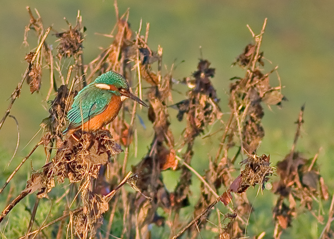 The title of today's entry is good, just shows that Exeter is a great city to live in. I was up very early this morning and by 6.30, sat in a bag hide, hoping to see the otters responsible for all the tracks I have been finding these last few days. I drew a blank and after the day had dawned and we had some light I went back to sit in my Kingfisher hide. The Kingfisher is like a drug and I just can't get enough of him. I am beginning to learn more and more about this individual. One of the things I am rapidly discovering is not to assume that you can predict with certainty when he will put in an appearance. This morning for example, it was well after 8 before I saw him. He was around the hide area and fishing and he flew past me in both directions a few times. The light was so perfect and I was really hoping that he would bring his catch to one of the hide perches. I can only assume that he wasn't successful near to the hide because the nearest I got to him was this picture which shows how good the light was and also how frustrating it can be when he is just that tiny bit too far away, about 20 mtrs in this shot.