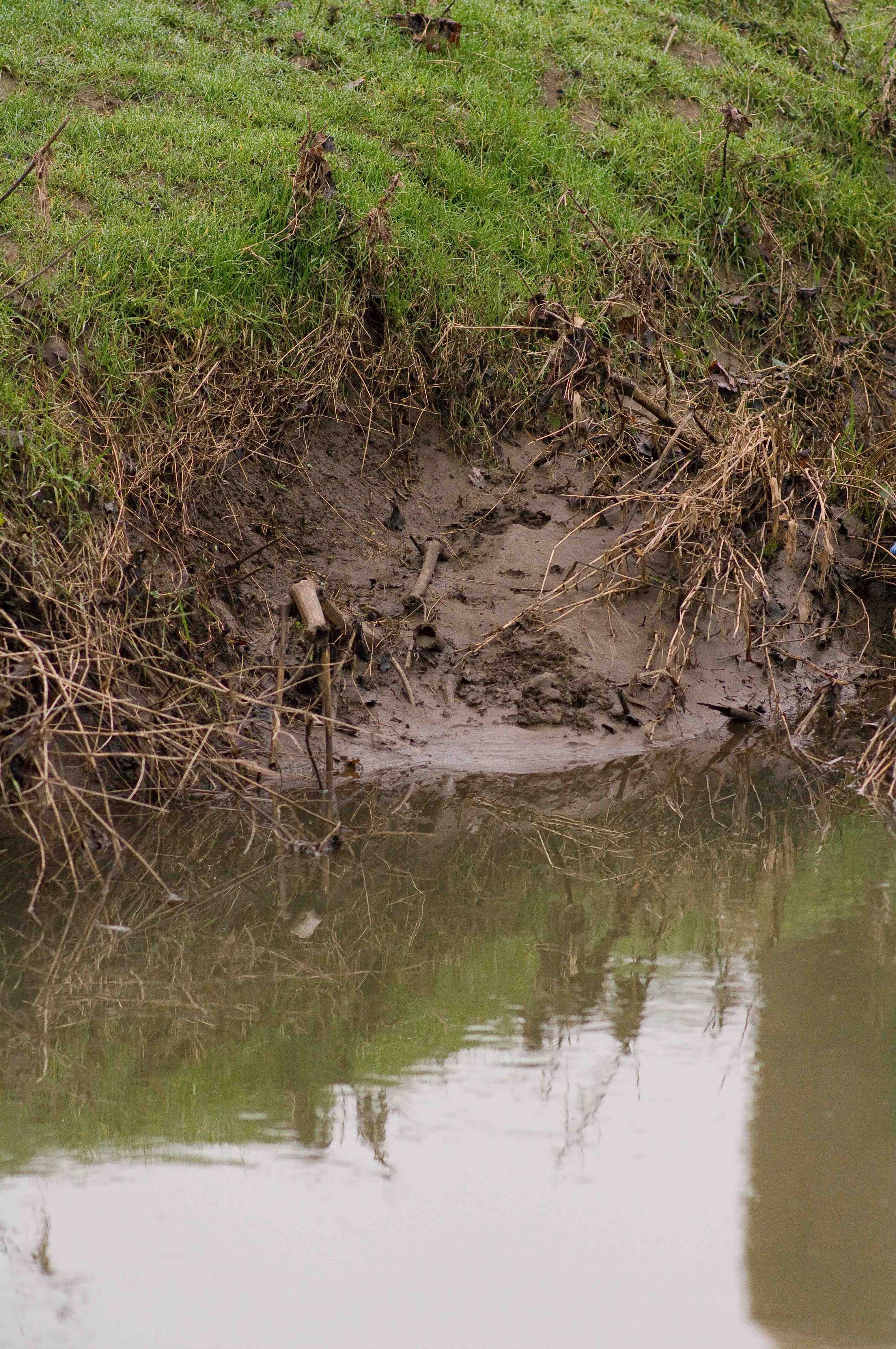 With the wet and unkind weather there is not a lot that I can do at the moment apart from look for more signs of Otter and take photos. Late last night I had been out until midnight to hopefully get a sighting by the ambient street lighting, but no luck. I sat on the bank above the ramp and I know that I was quite unobtrusive because a couple of Rabbits came out to graze and hadn't seen me until I made a movement. I gave up and came home. This morning I went back to see what I could discover. I was pleased to see that there were new tracks and new spraintings which has added to my sense of frustration. There is even a very new "sand-castle" on bank that is clearly visible, and close to my Kingfisher hide…… how frustrating is that? So, I have taken the bull by the horns and bought an infra-red camera trap which should get me some good "record" photos. This will record the time, the idea being that I record when is the most active time. I will then be able to know when I have a better chance of a really good "pro" quality photograph. I have a plan for this as well so, as my wife said, I am obsessive but to get a photo of a city otter then I guess I have to be.