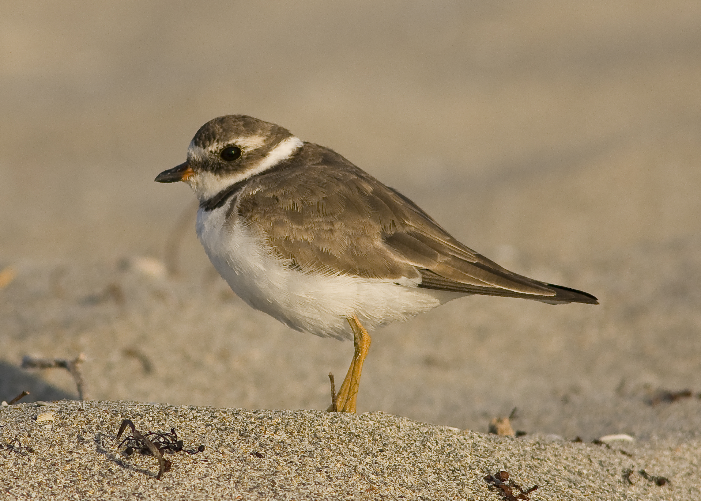 On the morning of the 30th (yesterday) I took an early morning walk along the beach adjacent to John Lloyd Park near to the Davie Pier. I had just reached the fence line that defines the park when I noticed a small bird on the surf line. I stood very still and crouched low and started to take pictures of what turned out to be a Semi-palmated Plover. This bird is the New World equivalent of the Ringed Plover in Europe. It is a bird I have been aware of so it was a pleasure to not only see it but get such fine close-ups. I am guessing that this bird has not yet completed its moult in to full breeding condition. When it has it will have a more prominent yellow beak and perhaps even more of a black neck ring.