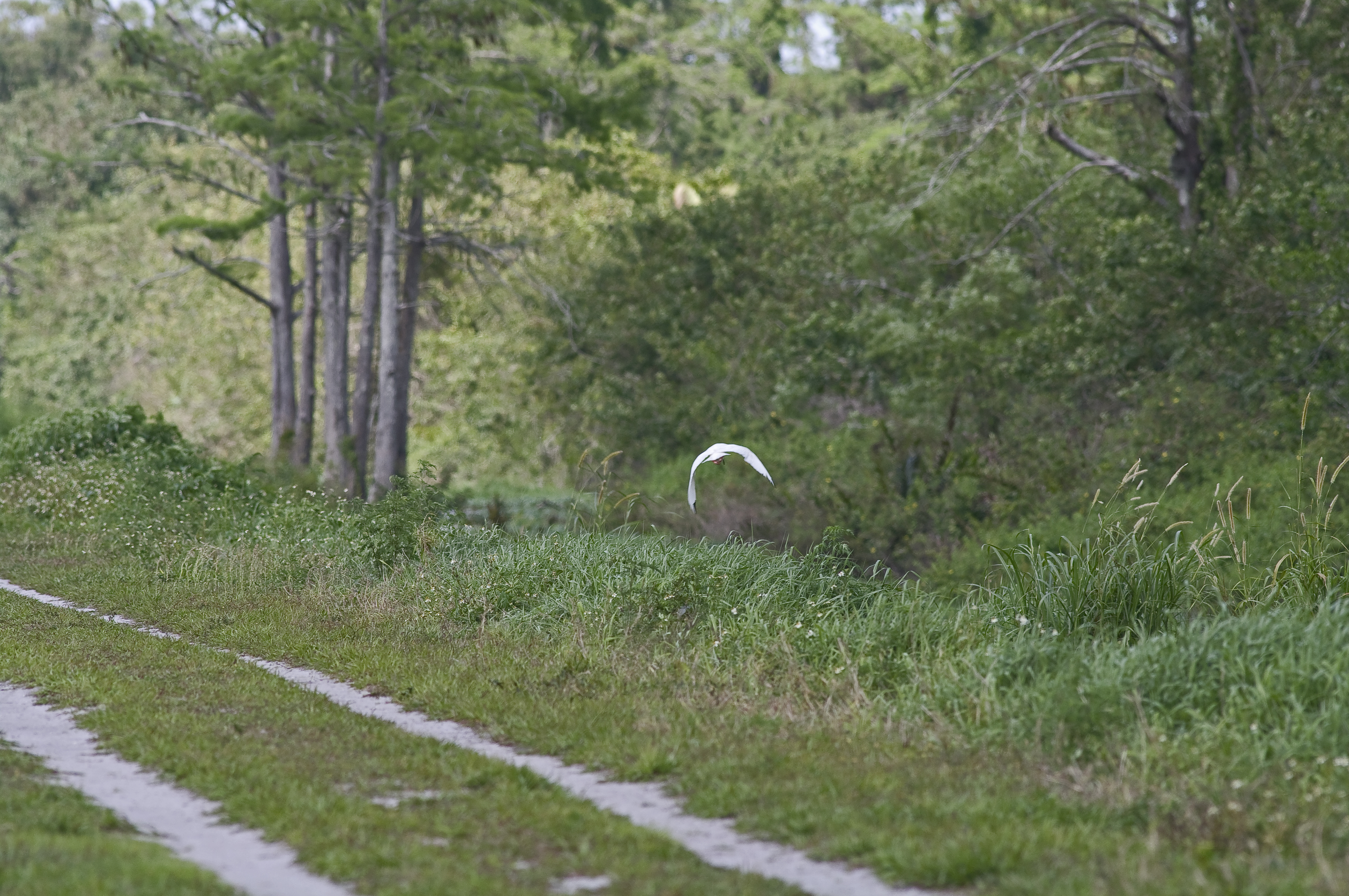 The White Ibis, particularly when in spanking breeding condition like this one, are particularly attractive and a bird that is synonymous with the Everglades to me. This one was by a track and you can see how wild this area is.