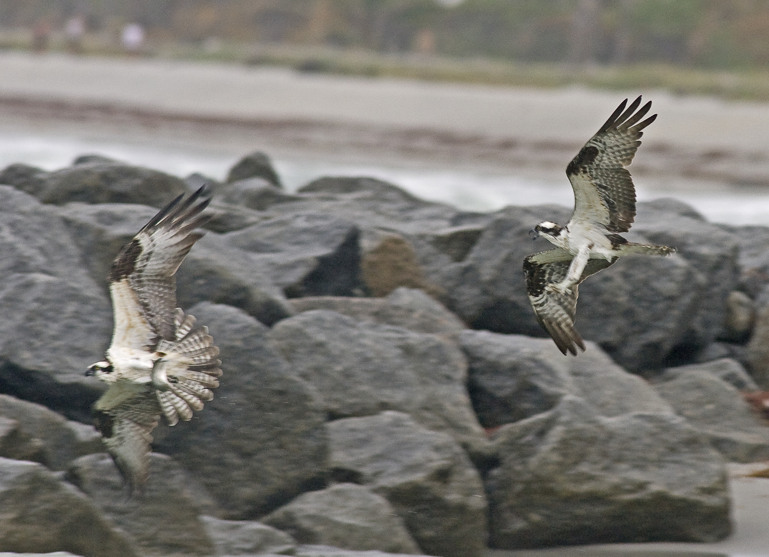 You can see the fish in the talons of the bird on the left (bird2). After a bit more tussling the bird with the fish left and the original bird returned to the little bay right next to me.