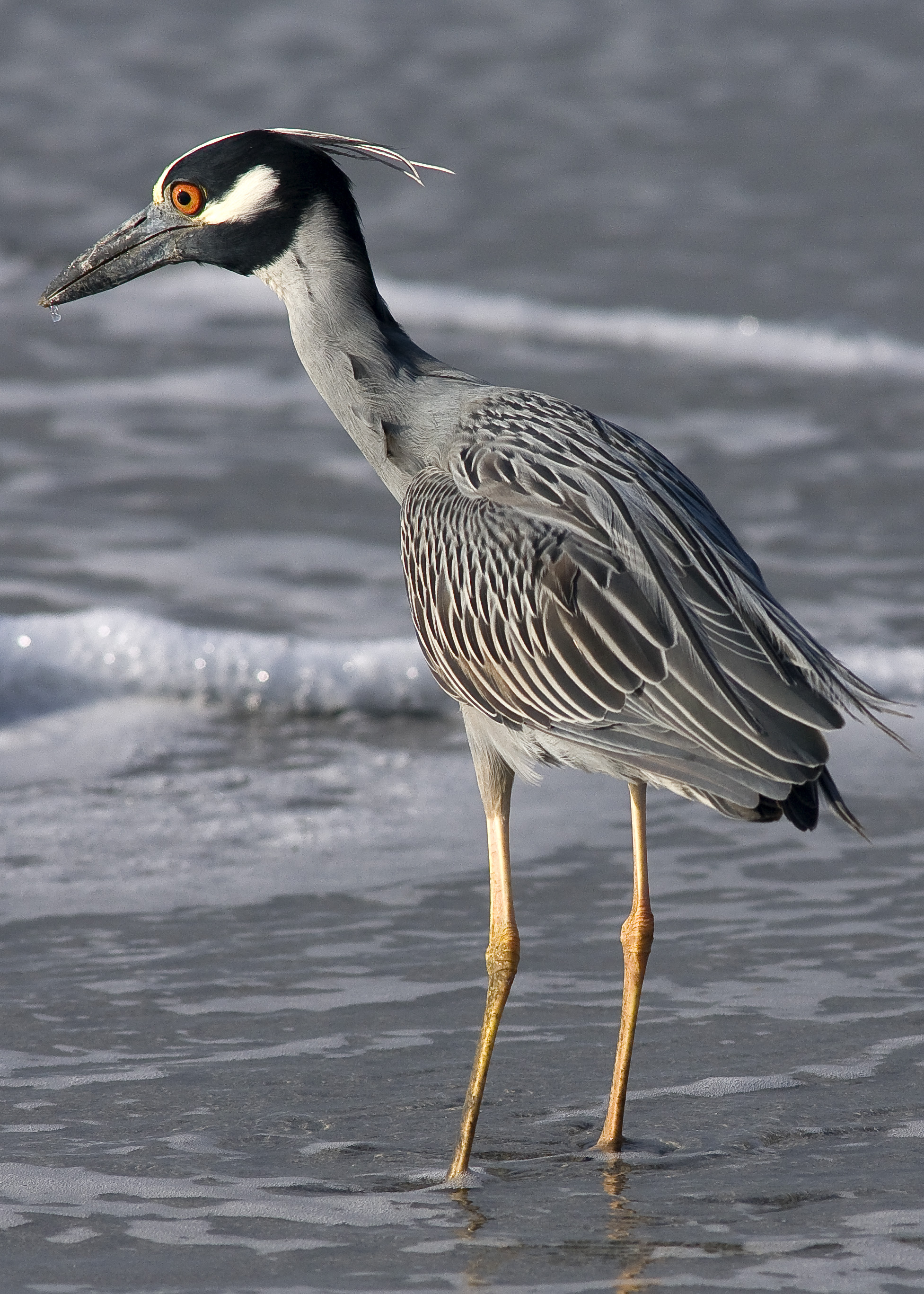 Anyway, back to the Night Heron. I glanced down the beach and saw a larger shape than usual on the serf ine. I quickly made my way towards the shape and realised that it was a glorious Yellow Crowned Night Heron This is a bird that I have hardly had a chance to get close too previously.  Little did I realise that this bird was going to be so confiding and "we" strolled down the beach together. I was really surprised that it not only allowed me to get close but completely ignored, or perhaps more accurately, accepted my presence. All the time, as we walked, as long I wasn't invading his space, we got along fine. Even when he stopped to catch a ghost crab, which was the purpose of his stroll if not mine.