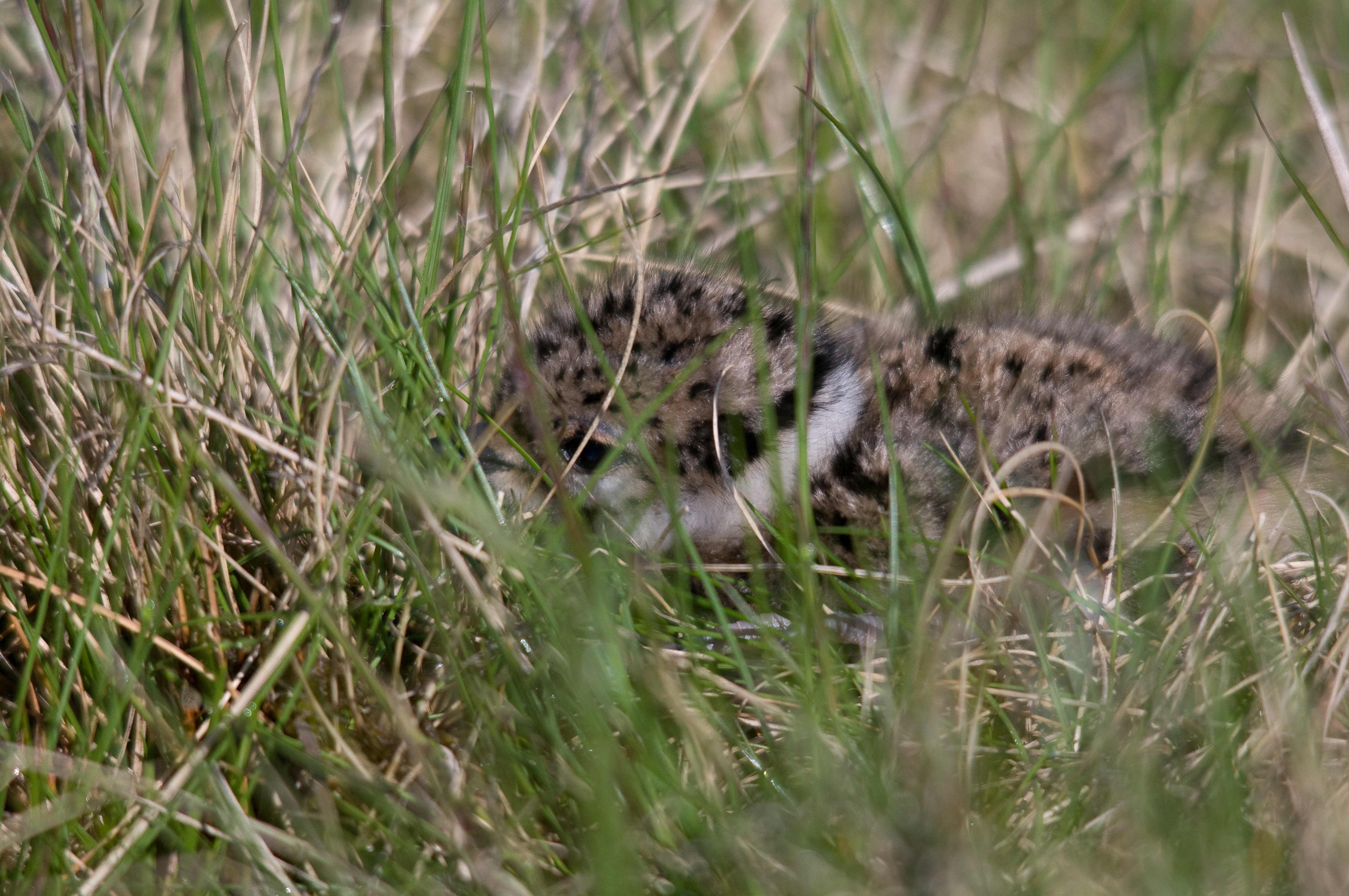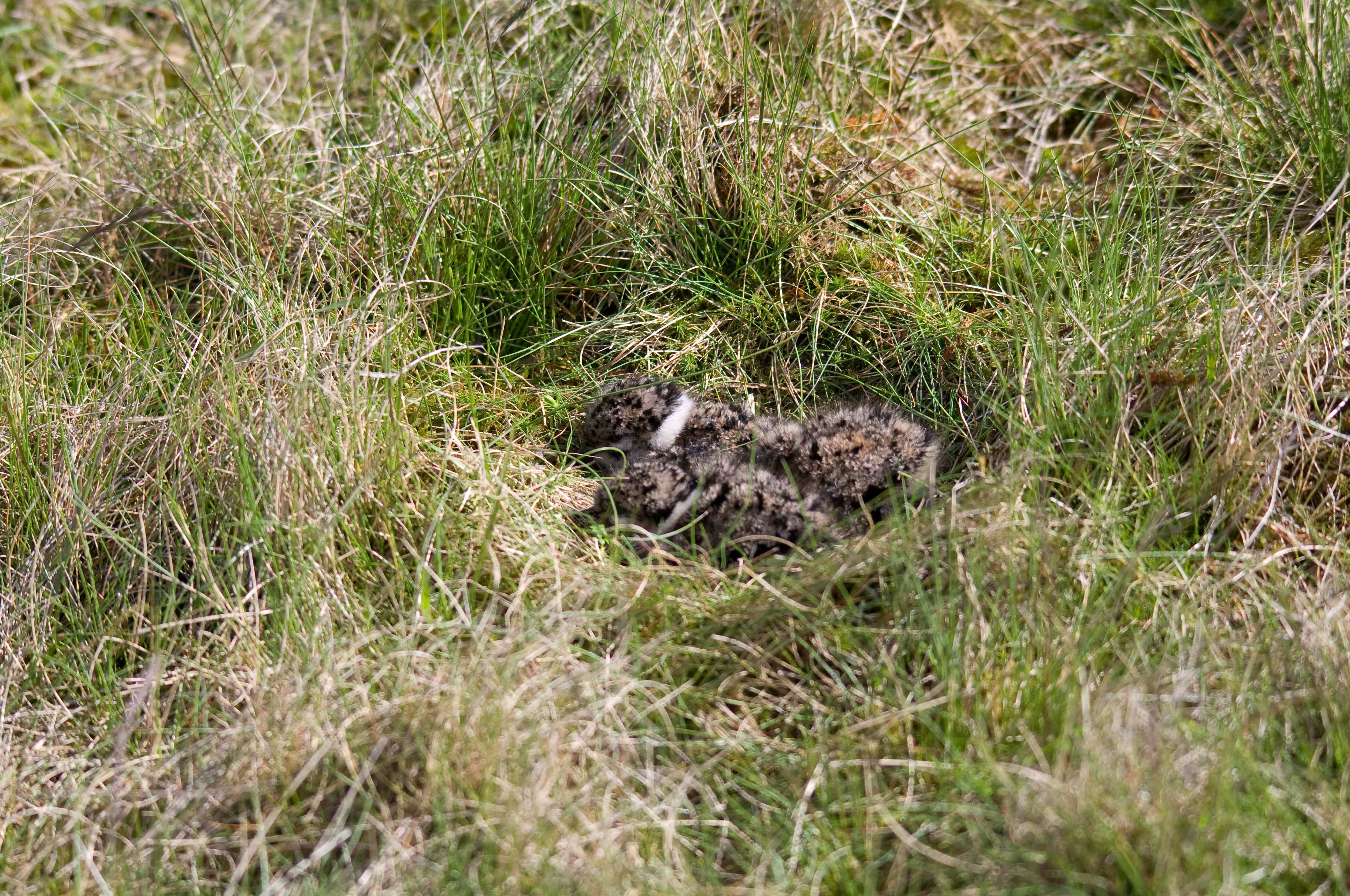 I was slightly concerned that there was now only 3 but near to the nest I discovered the fourth. I took it's picture and left the scene, quickly as before. This was a very interesting and rewarding encounter and one that I will be happy to remember, especially in the middle of winter when we have left the breeding season and summer well behind us. It was particularly rewarding to find the nest not only because it was nice to know that, in spite of the birds best efforts I was able to read the signs, but also great to know that there are places where Lapwings can, and still do breed successfully. Finally, who could not be entranced by the sight of these beautiful little chicks? Incidentally, chicks such as these, able to walk and feed soon after hatching, are known as precocial as opposed to nidiculous when birds are born helpless and blind.