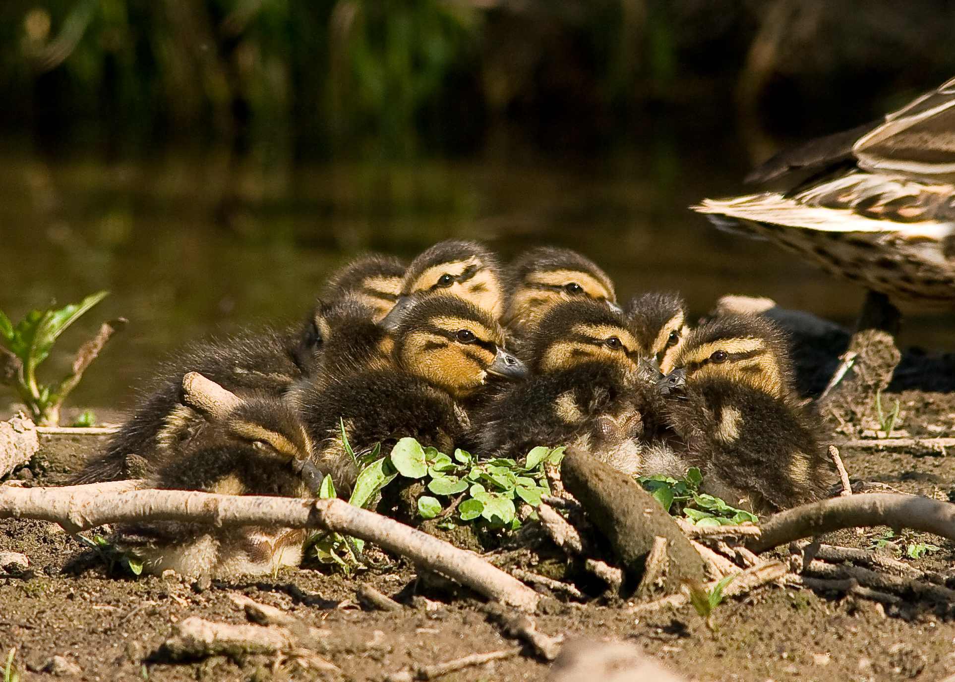 Mallards are common ducks, native to Britain but like lots of nice things, now spread by our forefathers to almost all the corners of the world. For example, Football (soccer to you Americans), Rugby, Cricket, Jet engines, the printing press and democracy!!!!! I'll leave it there, but there are lots of others …. oh I forgot TV. But enough of the tub thumping and back to wildlife. Mallard meed no introduction but when truly wild can be hard to get really close to. It was therefore, nice when this mother and her 9 babies camped in front of the hide and I took these very cute pictures.
