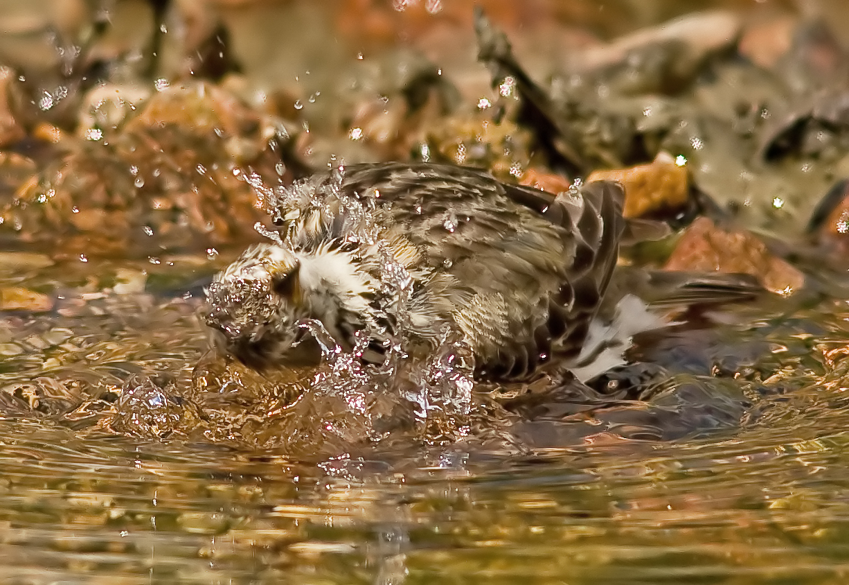 I continued with my exciting quest for close-ups next to my pool deep in the wilds of Dartmoor. It is hard to put in to words how lovely it is when sat concealed next to the water not knowing what is going to land very close in front of you. I pretty much know what is expected, but there is always the thought and anticipation that something rare and very interesting may arrive. It is always good when birds land near because you know that your cover is good and your confidence is given a big lift. Patience is really important. Foe example, yesterday I spent literally four hours which flew by. The air is fresh and the peace, quiet and tranquility is wonderful. Yesterday was interesting, I was mainly waiting for the arrival of the Yellowhammer pair that are in the vicinity and when the male put in a very close appearance, well to be honest…….. I blew it! It landed, unannounced on some rocks that I had strategically placed in the water right in front of me, very exciting……… then it moved quickly to the edge of the pool, took a drink and flew off before I could even get one shot! I won't write here what I said to myself, but you can guess I am sure. When you see a Yellowhammer very close, it is just amazing how bright yellow they are. The colour is intense and the chestnut markings just such a good contrast. Have you ever noticed that colours that you wouldn't expect to go together, in nature are a perfect contrast. How did that evolve? Just look at the colours of Bee eaters, Rollers and Kingfishers for example. Deep and philosophical questions I'm sure! Anyway, we had the pleasure of 4 or 5 different Meadow Pipits and one thing that is becoming noticeable about them is the variety and intensity of markings. The ones above shows the same individual and because they are in the water you can't see their plumage particularly well. But this one below is totally different, it is a young bird, one of this years immatures and very subtle in tits markings.