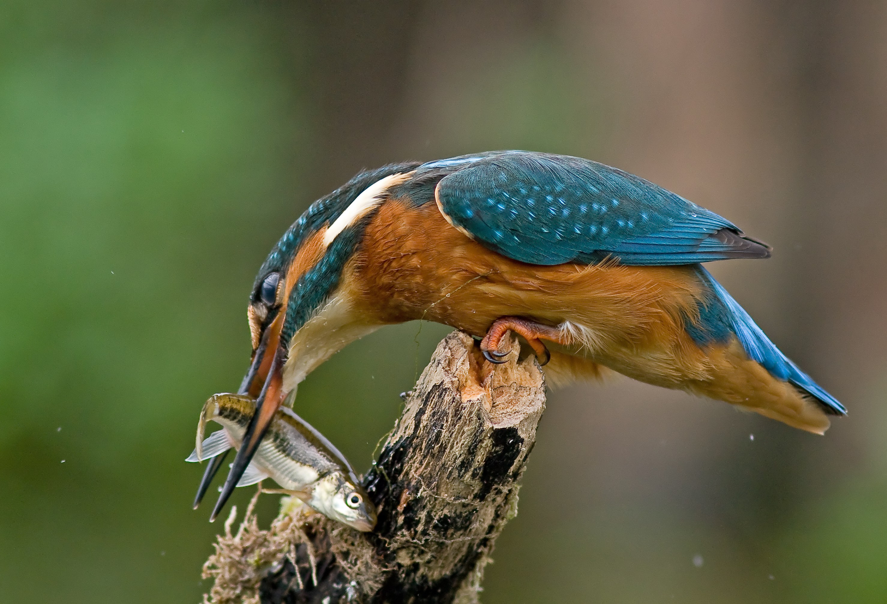 July is a great month, even if the weather is a bit dodgy it's usually still reasonably warm and today was like that. Overcast and a bit rainy at first but not bad enough to keep me out of the hide. I'm glad I made the effort because she was with me after a short wait, appearing in the viewfinder with another massive minnow. She really can handle these big fish, just compare it's length to her body, that's one big fish for her to deal with. The male that we had with us for so long over the Autumn and Winter made a big deal about dealing with large prey. Not this bird, she just manoeuvres it until it's head first and down it goes. Today, after a big breakfast she flew to the opposite side and sat there for at least half an hour to let it "go down". When I first saw a Kingfisher last September, here on the brook, I dreamt of getting a good shot with a fish. Now if its not absolutely perfect, sharp and doing nothing but posing, it gets binned. This morning I took a couple of hundred photos and deleted 75% but most of them were good, it's just impossible though to keep 300 pictures every day.