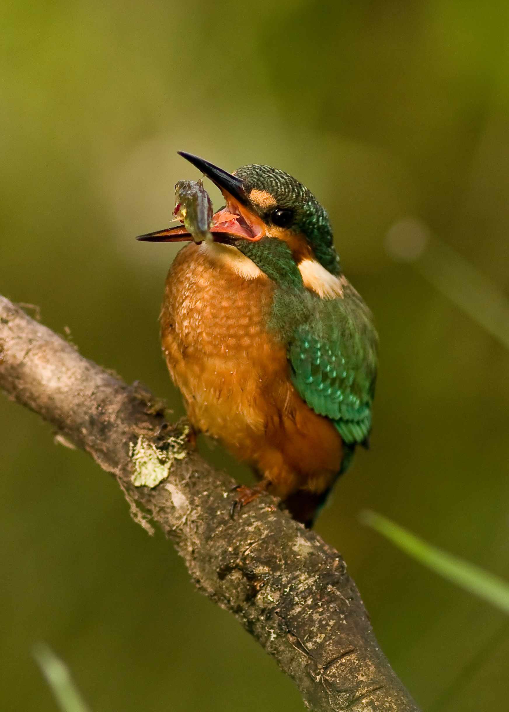 I know that people are visiting the blog just to see kingfisher photos so I I am under a certain amount of pressure not to disappoint! Last Monday morning was the last time I saw Kingfishers on the brook when I visited the hide with my Daughter- in -law Carrie. We took these photos while the bird was with us for several minutes with a Stickleback. Then after a while we both were surprised to notice another Kingfisher on a nearby perch. Eventually, or should I say, quite quickly the first bird was chased from the territory by another bird which then returned to the perch having successfully ejecting bird number 1 from the area. There was no fight this time, the origianal bird choosing to leave rather than fight. They are very hard to tell apart but I discovered which was which by looking closely at the foot colour and the difference in the extent of the beak colour in each individual.