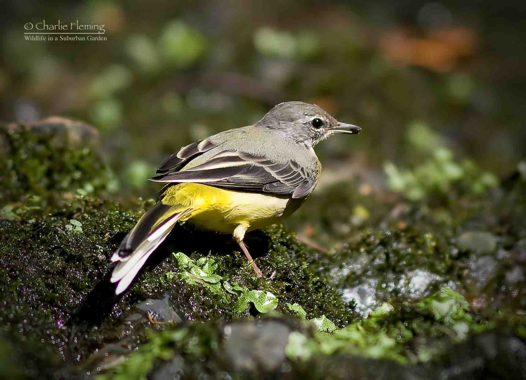After an hour or two laying on the far bank I decided to have a change and moved over to the opposite side. I sat very still under the "hide" and waited patiently and you know? He didn't come back to this spot while I was there, very frustrating. I know that the camouflage is working though because this nice Grey Wagtail came up very close. Also down the river about a hundred yards was a Heron which then flew up the river and very close to me.