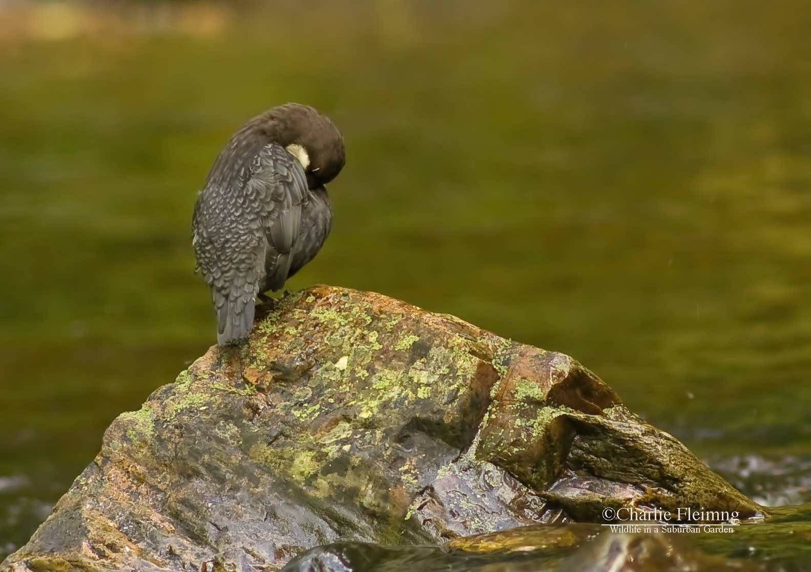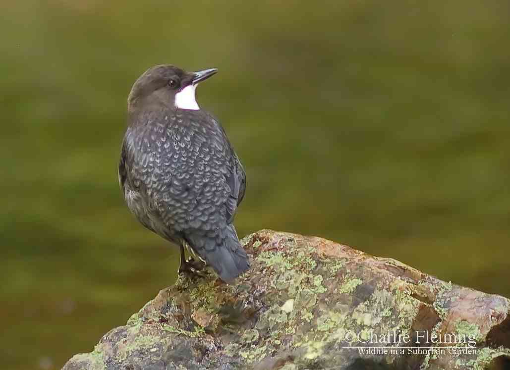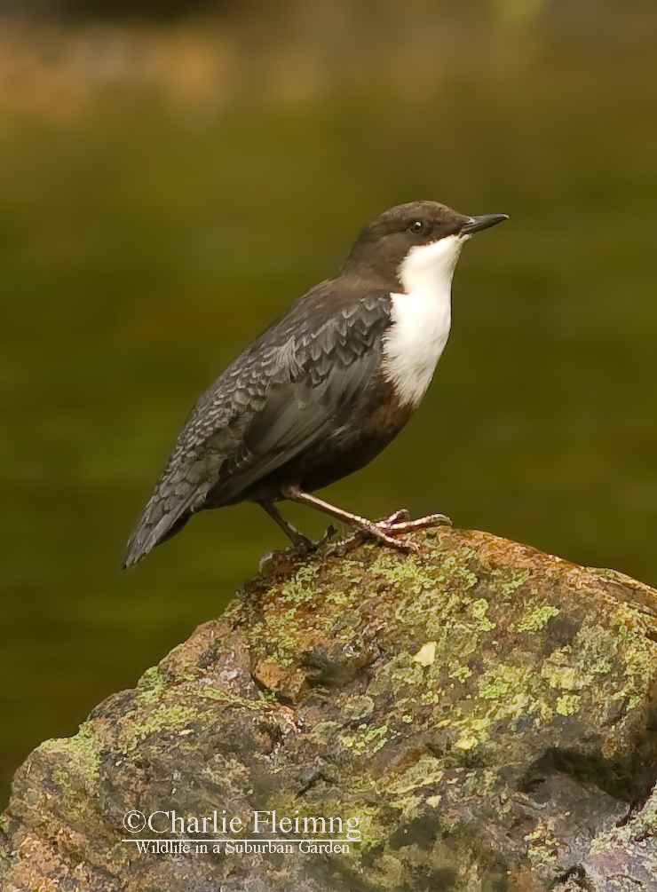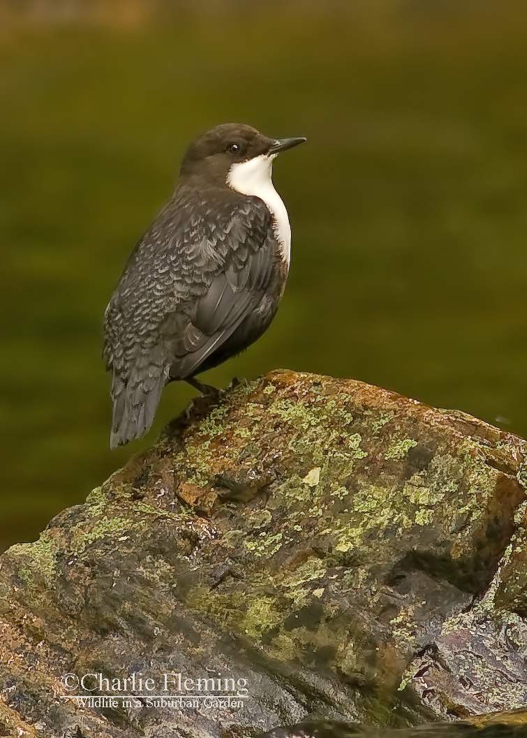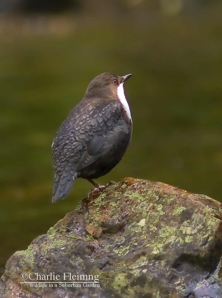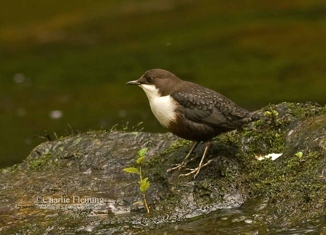 Today it almost happened. There is a significant improvement in my Dipper photos but still can’t get as close as I want. But first here is the day’s events as they unfolded. I got myself out to the river a little later than yesterday but was sat ready and waiting by 11ish. It wasn’t long before a Dipper was opposite me and feeding in the shallows. She, and I say that because I am sure that’s what she was, was too far for a photo but I kept my fingers crossed and hoped that she would come over to me…… she didn’t but flew upstream and past me. This was good because if she was aware of me she would have flown away from me and not past. I sat waiting for her to return when suddenly another Dipper (the one pictured) landed on the rocks, again opposite me but still on the opposite bank. This one was brighter in colour and I could see his throat ‘going” as he warbled away to himself……. must be a male! I hadn’t really thought of the Dippers actually singing but apparently they have a nice song. Quite how you can hear it above the sound of waterfalls I don’t know…….. another one of natures weird facts. I have said before how their call, usually uttered when they fly away, is in a frequency that is higher than the rumble of tumbling water. Anyway, back to this Dipper who stood on his rock and preened and rested for twenty minutes giving me the chance to adjust the camera and get the very best photo that I could. When it was all over he did exactly what the female had done, flew right past me and upstream never to return today! While I sat there I had another fly past from the Kingfisher which was interesting but again, very frustrating.