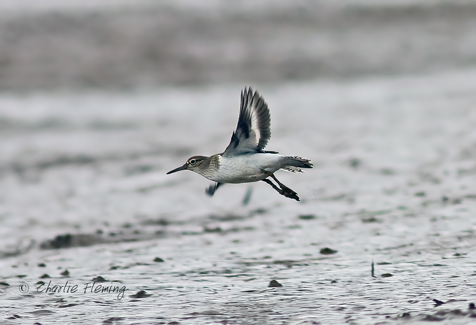 On Wednesday I took a few photos of a Common Sandpiper in flight. One or two of them were quite good. I was hoping that I would be able to get close to them today but it didn't happen……………. but it will. In the meantime here is one of those distant flight shots in very grey conditions.