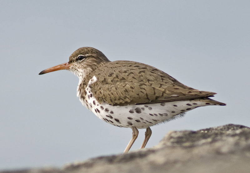 So I went out to Turf this morning and I am glad to say……. well as you can see, I did see the Spotted Sandpiper. It was in an area that I hadn't looked either yesterday or on Saturday so perhaps I had missed it then? This bird was a pretty one, it's a juvenile and would have bred somewhere in the north of Canada or the USA. Geographically the Spotted Sandpiper replaces the Common Sandpiper here in Europe. It is not that unusual to see the odd Spotted Sandpiper in Devon, in fact we had one for a few weeks in December and part of January last winter. The birds here in the UK are usually juveniles or adults in non breeding plumage which is a shame because they are particularly attractive when in breeding plumage. Have a look at the picture I took back in the spring on the beach in South Florida. It shows a bird in breeding plumage, on migration going north to breed.