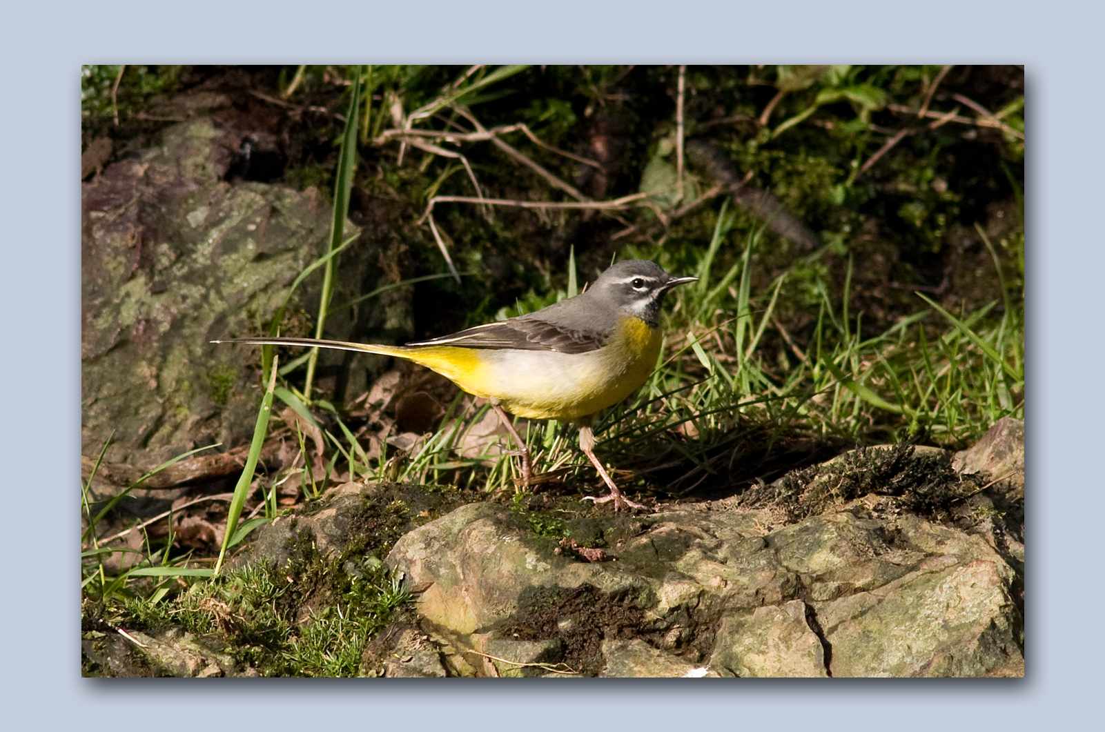 I mentioned yesterday how Grey Wagtail males develop a black bib when they are in breeding condition and the one I photographed then was just starting to show signs of black? Well today the bird I saw and pictured was a bit further in to breeding condition and he has a nice black bib already and is a very pretty bird.