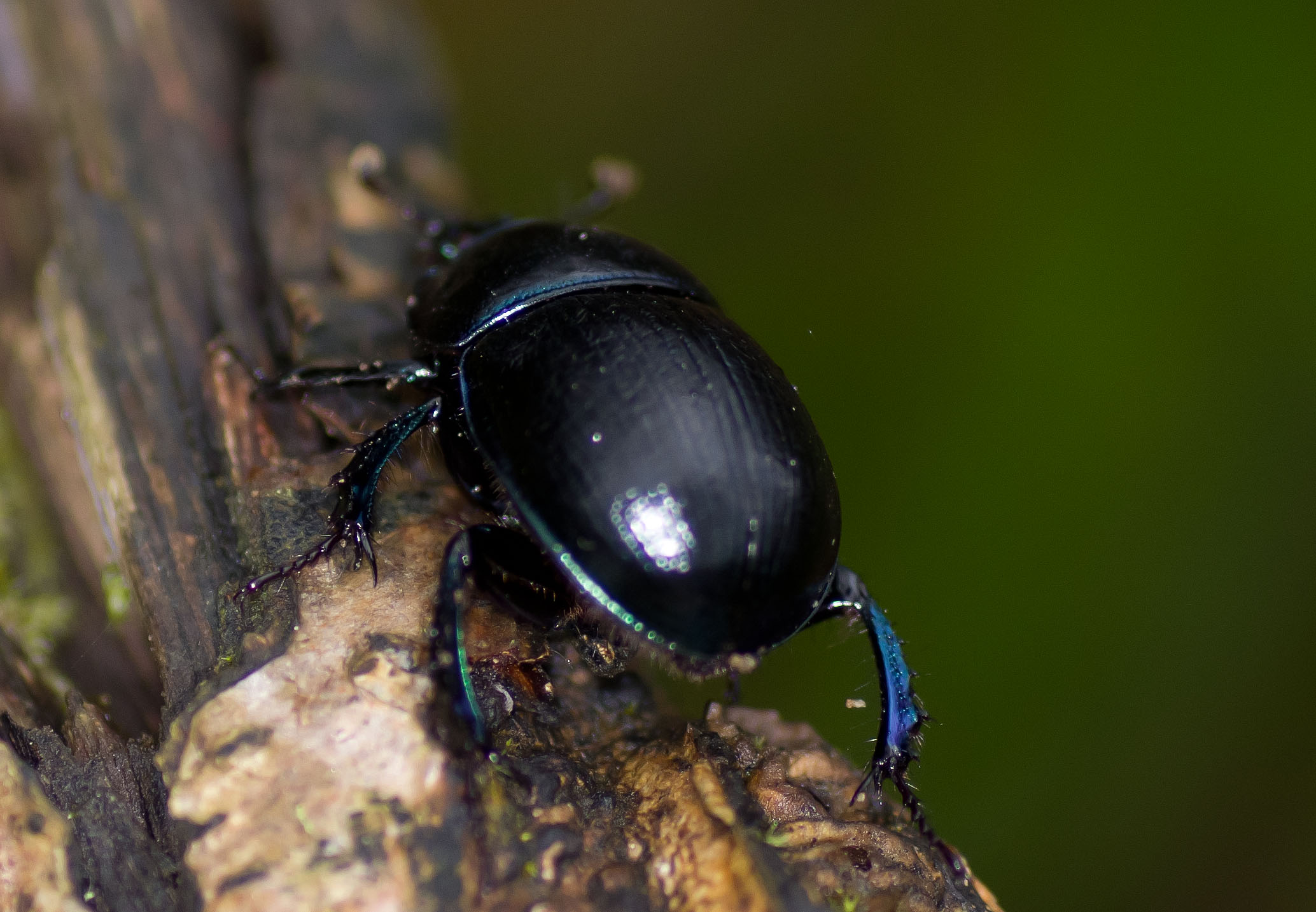 This is a Dor Beetle, also known as a Scarab or dung beetle. It was a surprise to see it in this situation because they are usually associated with pasture where there are cows or sheep.