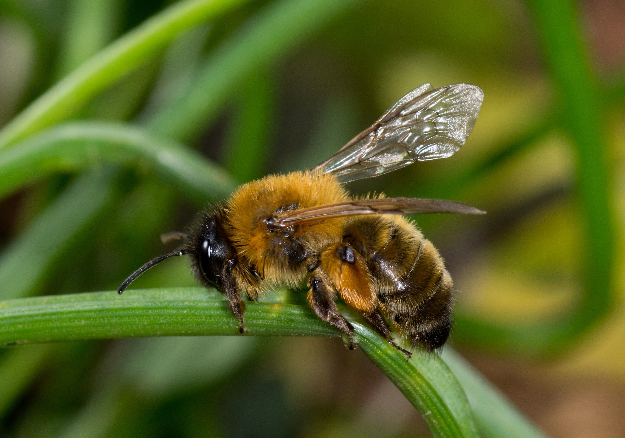 In my last post I had shown photos of the the nest burrow of Andrena nigroaenea and promised a photo of the bee as soon as I managed to get one. It didn't take long today. As soon as the sun came out and it warmed up, there were one or two around the burrows on the lawn. It is very exciting to know that this species is in my garden , and probably has been for years, living ther, unseen and unstudied (at least by me). It is very satisfying to find them and now, to be able to get some great photos as well. This is the same individual and it is a female. I did take another photo of another individual which is smaller, slimmer and a has a richer colour on the thorax…….. probably a male.