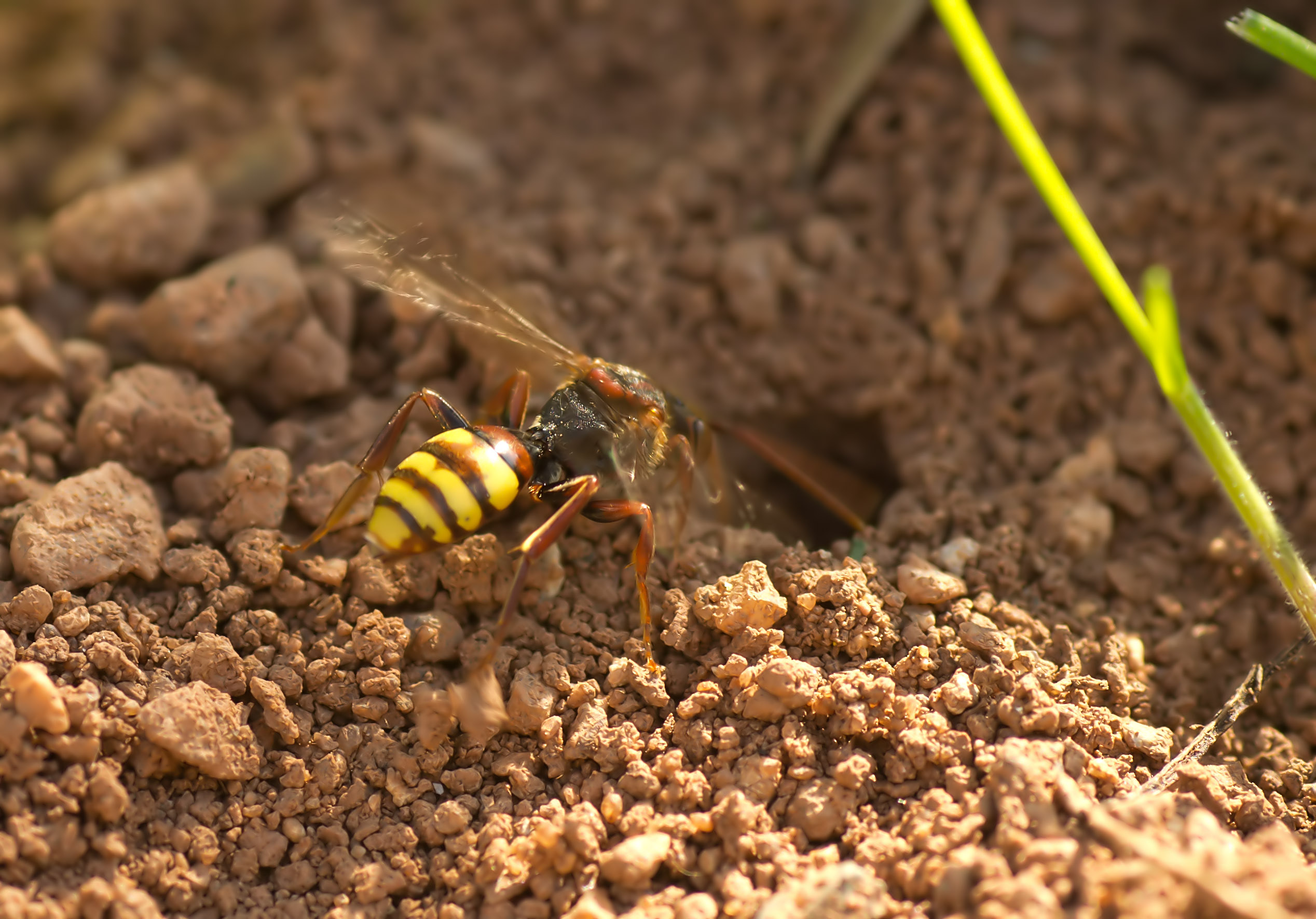 This is not a wasp, it is a Cuckoo Bee of the species Nomada. This is a really fascinating and amazing species of insect. What is so special about this insect is it's life cycle which rivals anything that might happen in the jungles of the Amazon or the grasslands of the Africa plains. Once you start to delve in to the wonders of nature all around you, and in your own garden, it's just truly amazing what is going on all around you. Please, I beg you……… don't use insecticide in your garden, resist the temptation to use weed killer and look around you!
