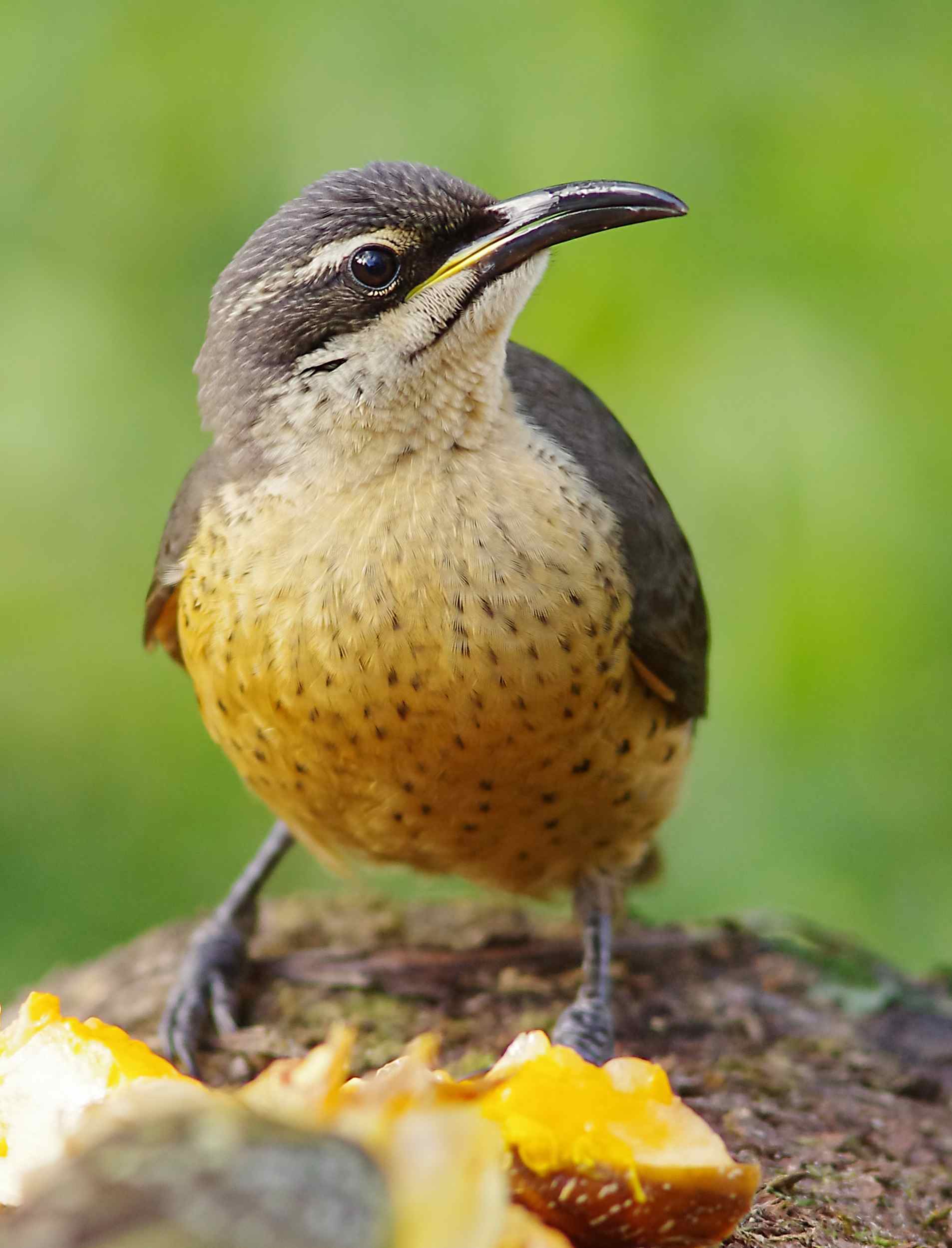 If all the birds are like this in paradise then I am going to start behaving in the hope that I can get in!!!!!!! The plumage is just totally iridescent and in a bird the size of a small dove, really impressive. The females are totally different, being a combination of rich browns and lighter contrasting tanny fawn on the breast. Both have a long down curved black beak. Perhaps the most impressive feature is the inside of the mouth that in both sexes is the colour of ripe mango!