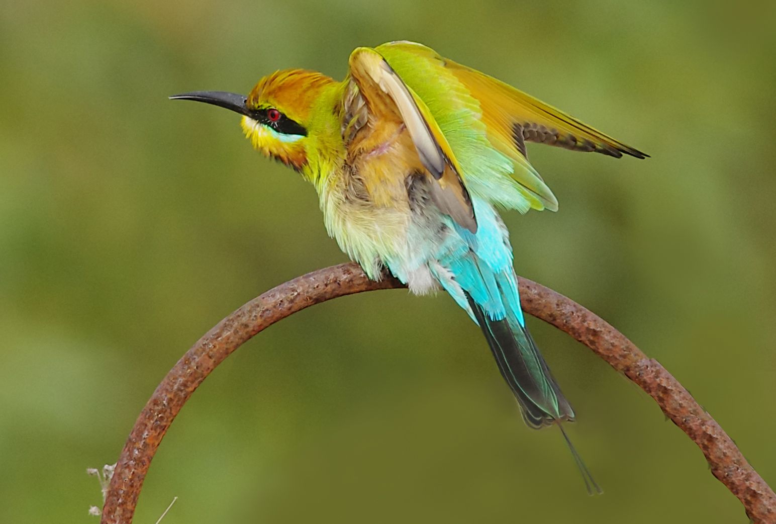 Black Kites and Rainbow Bee Eaters have been obsessing me, (or should it be the other way around), this last few days.  Both are common birds here so it  would be a travesty  to leave for home and not get the very best photos that I could. I posted the best of my Bee Eaters "in flight" shot on my last entry but I took a picture on Saturday that I am really excited about.  I have a sequence of one stretching and showing the beautiful plumage. I love these birds!