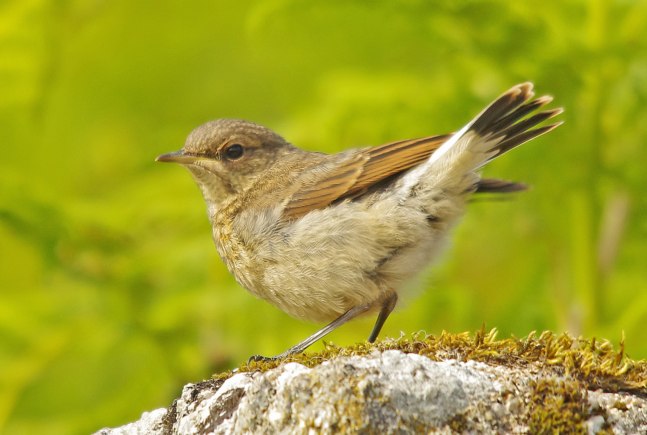 I bumped in to this very young Wheatear this afternoon. They are a typical bird of high moorlands and share the same habitat in Devon as Whinchat, Meadow Pipits and Cuckoos. I had seen the parents of this young bird last week.