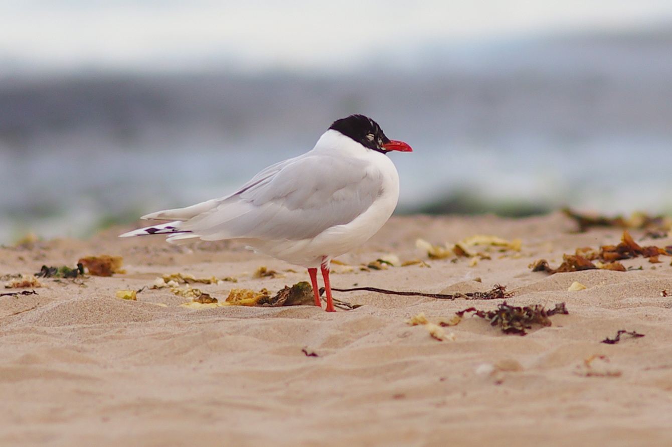 The Mediterranean Gulls is a really attractive species of Gull that is now established as a breeding bird in the South of England, but a comparatively rare sight. I had got wind that there were a few amongst Black Headed Gulls on the beach at Exmouth. To be honest though, I thought they would be hard to find, but when I went last night, late in the evening, I found them relatively easily on the beach. The light, albeit only for a short while, was almost exotic and I took photos which was an improvement on my previous Mediterranean Gull photos. The beach was quite busy so they were disturbed easily and it was hard to get as close as I would have liked. This juvenile Black headed Gull was quite a picture and I haven’t realised that they were so attractive.
