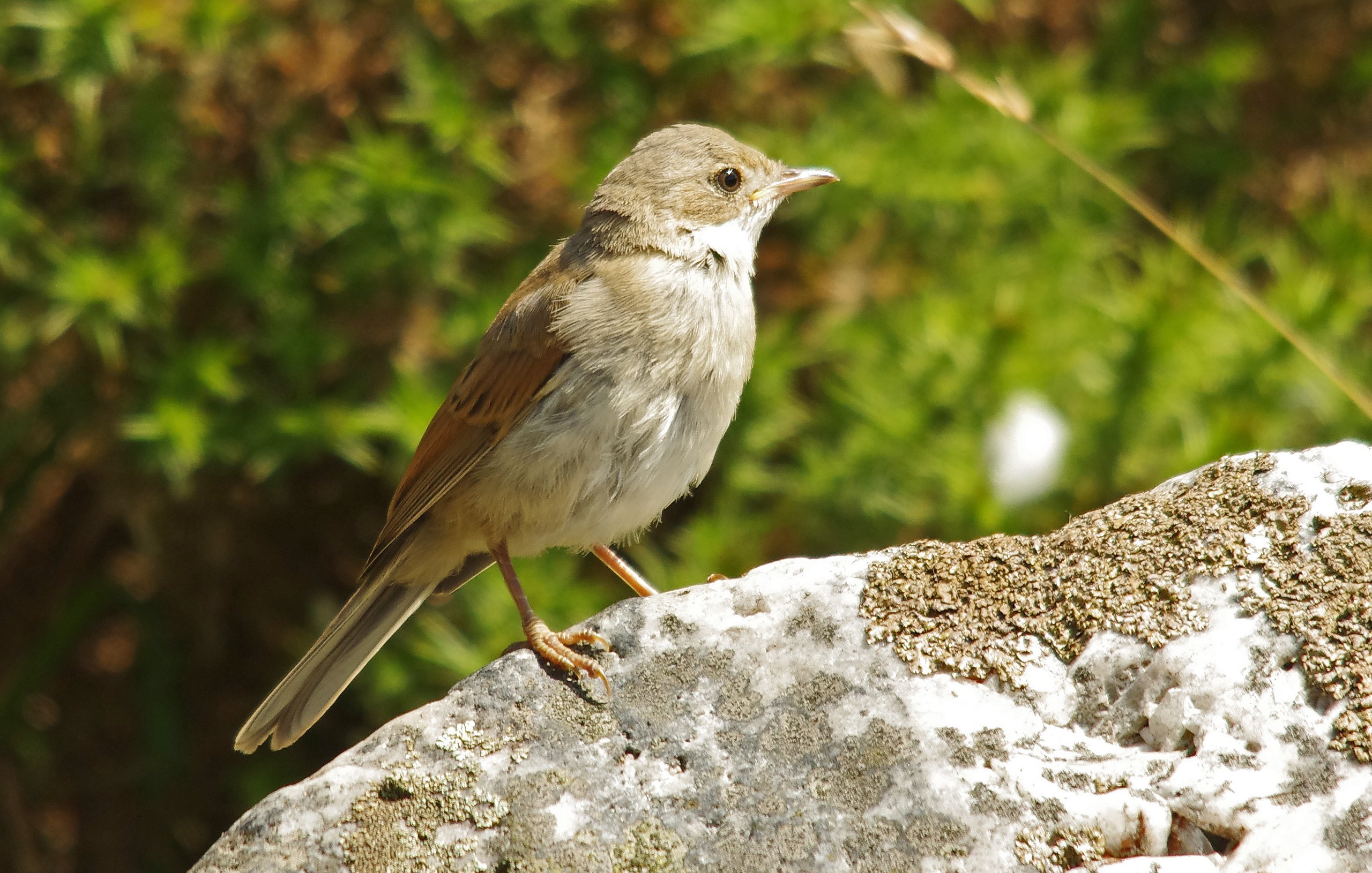 You may remember that I had hardly seen a bird at my pool hide these last two days. It was unbelievably quiet. I proved something to myself though this morning. The forenoon is by far the best time for bird activity at this particular site. As I walked towards the pool under cloudless blue sky, I immediately noticed the presence of birds, and lots of them. I got myself sorted as soon as I could because as soon as I got under cover, a Pipit was in front of me. Even as I struggled to erect the tripod the bird started to bathe. Eventually…….., (more haste, less speed)…….. I was snapping away. There are real contradictions when the sky is bright and sunny, more birds, as I have said, but the harsh shadows cast by the intense light makes good bird photography a real challenge. You have a nice subject there in front of you and it looks good through the viewfinder but the end result is usually really lacking in detail. You have to be very careful to try and get the bird in a pose that reflects the light to your advantage. But what a session and what great birds. At one point I didn't know where to look because there was a young Bunting on the rocks while a couple of Redpolls bathed beneath me. The Bunting was replaced in the next minute by this little immature Whitethroat. It perched on the rock and seemed to be watching the adult male Grey Wagtail bathing below.