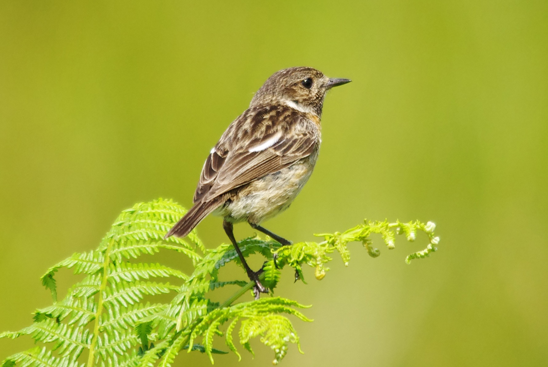 As soon as I had the opportunity today, I was off to the moor again and back to me my pool. I still need to photograph a nice male Linnet and so far, I haven't been successful. It had been a week or more since I last had a session there and I was hoping that everything was going to be untouched and in tact. I had been last Thursday with my granddaughter (age 2) and her mum and dad (my son Tom), just to show them and also to inspire. We had seen a few species so it was well worth it. Today, as I walked down the stream towards the pool a pair of Stonechat were showing themselves really well. I have seen this behaviour numerous times, I knew for certain that they must have a nest, or probably more likely, newly fledged babies somewhere near by. This behaviour is a distraction strategy employed by the adults to try and lure predators from their young. I always move away as soon as I can and leave them in peace very quickly. The male is above and this one is the female.