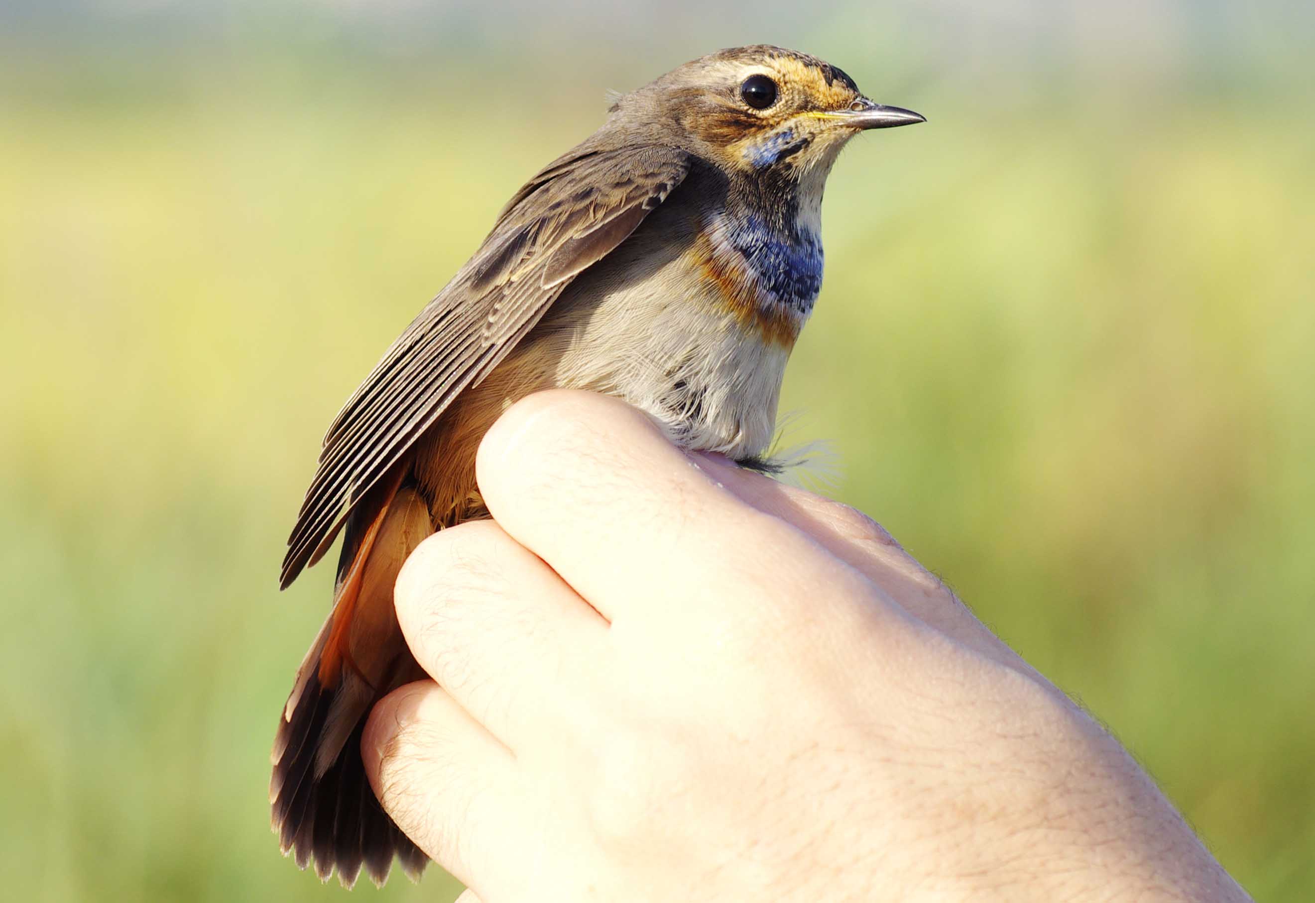 I have seen Bluethroat before, not in Spain but Portugal. Monica was as excited as me when she caught one, the first for two years so again, it was a thrill to see one so close. In fact, we caught two, both juveniles on migration, the second had more blue on the throat and was probably older than the first.