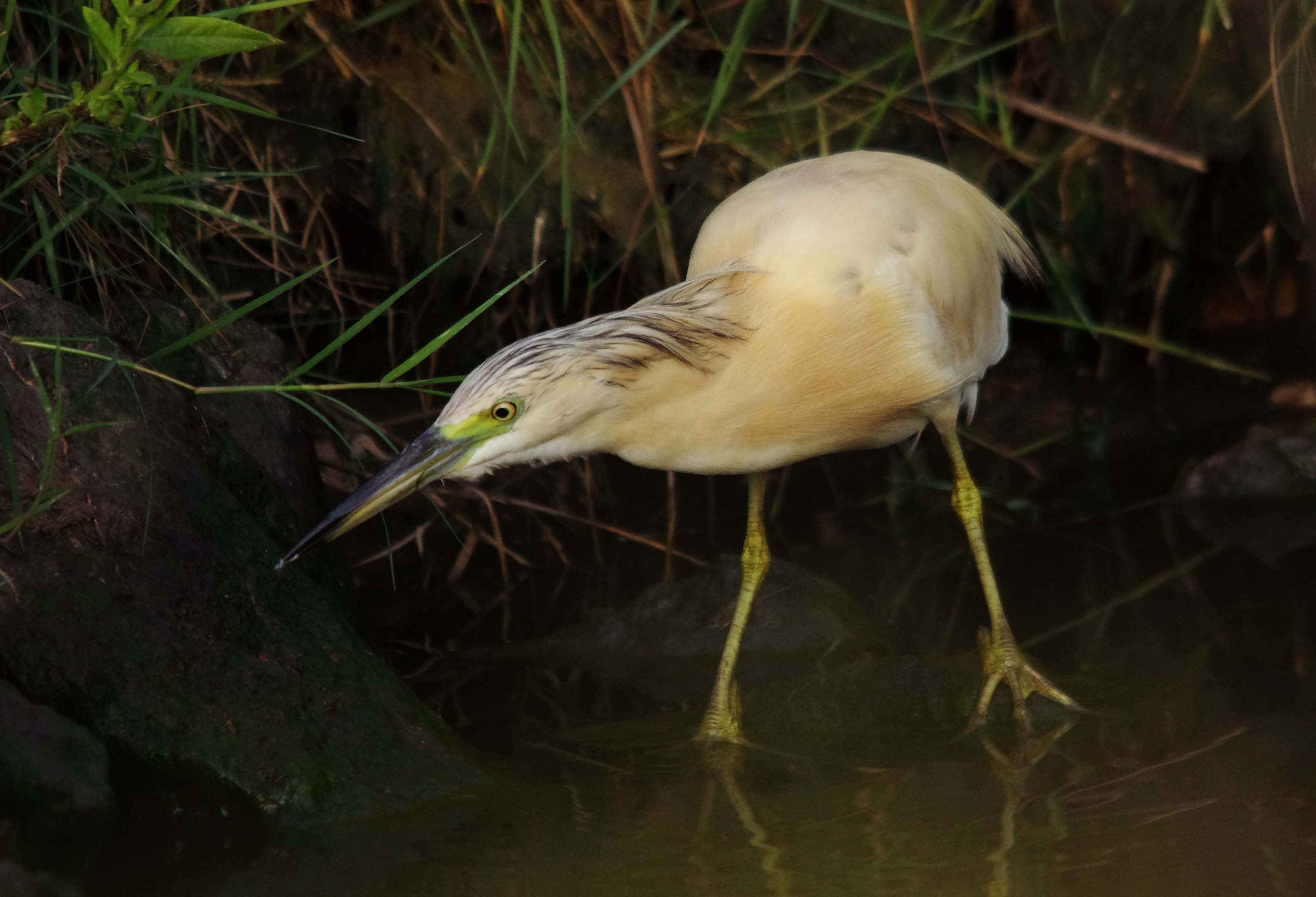 These juveniles are much more heavily marked with striations on the head and neck and a have a yellowish beak. A bit of research has shown that Squacco Heron are not particularly common in Spain. It is likely that they breed at Pego Marsh. They migrate to Africa in the Autumn but a few apparently remain in Spain. I watched one adult bird feeding in the late evening. The sun, in the photographer’s “Golden Hour”, cast a lovely light on the adult bird that was feeding in a small pond formed by the irrigation to the nearby paddy field. The reflections from this bird as it fished, created quite a picture and it was relatively easy to photograph because the bird’s method of feeding is to remain as still as possible and wait for the prey to come near. This bird fed in this way for at least an hour and well past sunset. When I returned the following morning, to take advantage of the good morning light, the bird was still in the same spot and fishing in the same pool.