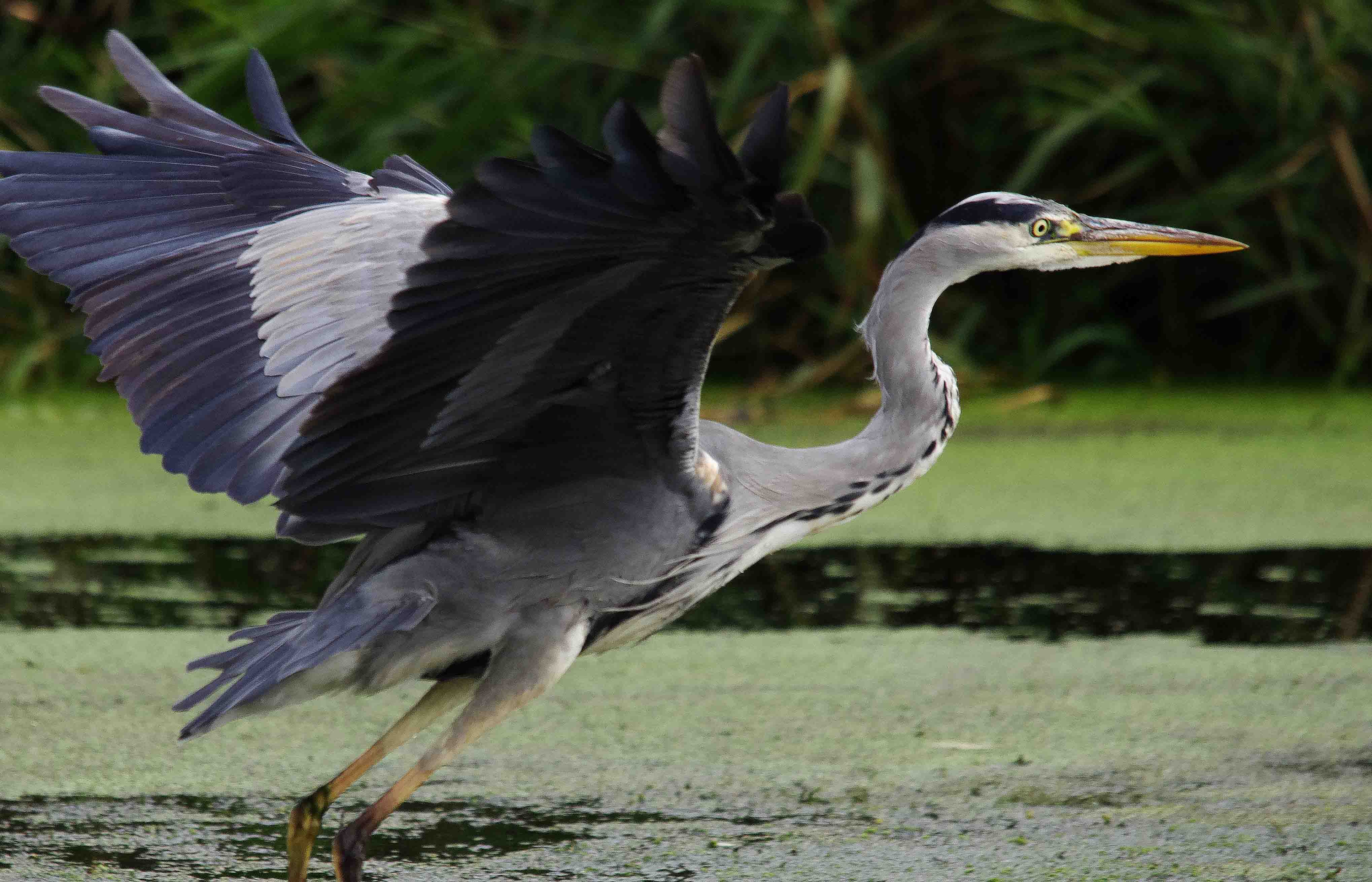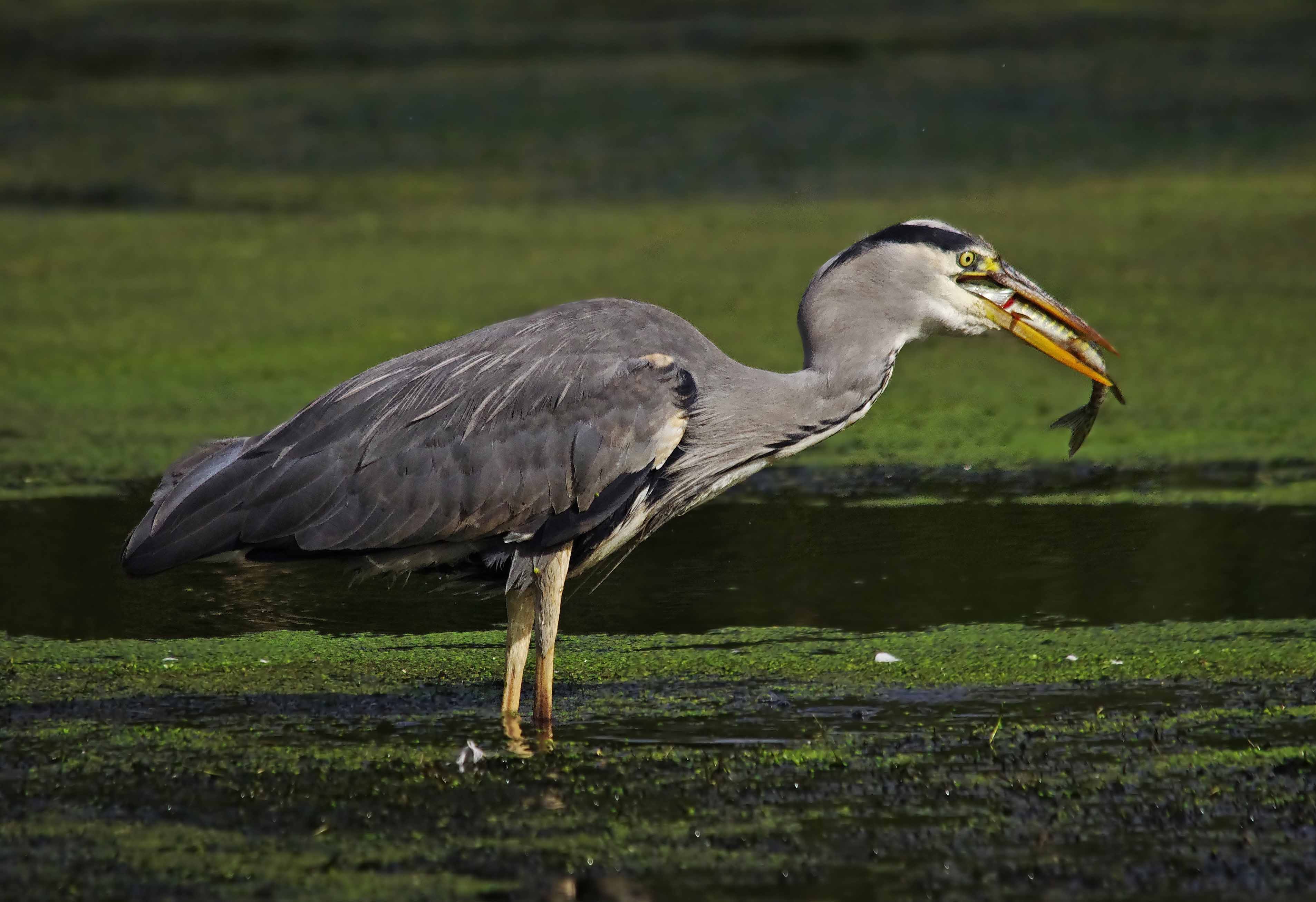 As I walked back along the canal yesterday morning it occurred to me that you can see, and enjoy some truly exciting and memorable wildlife experiences right here on your doorstep. Of course it may not appear quite as exotic but thats just as much about the “grass being greener” than the actual fact. It also depends on how hard you look and how receptive and observant you are. I always remind myself that when we have visitors from the USA here in Europe, they are always really excited to see our common birds, Blue Tits and Robins for example, birds that we take for granted and sometimes hardly even look at. So when I made a special visit back to Exminster Marsh, and specifically the canal area, I was looking again for the Grey Heron that has a territory along the Turf stretch. I located him quite easily and stood as still as him, he was fishing…… and so was I in a sense. I was of course, on the towpath but he was thigh deep in water his eyes intently fixed on the surface and just beneath. Suddenly he darted forward and his dagger-beak emerged from beneath the flowing weed with a small Pike. He quickly swallowed it and flew past me, settled and began his wait and stalk once more.