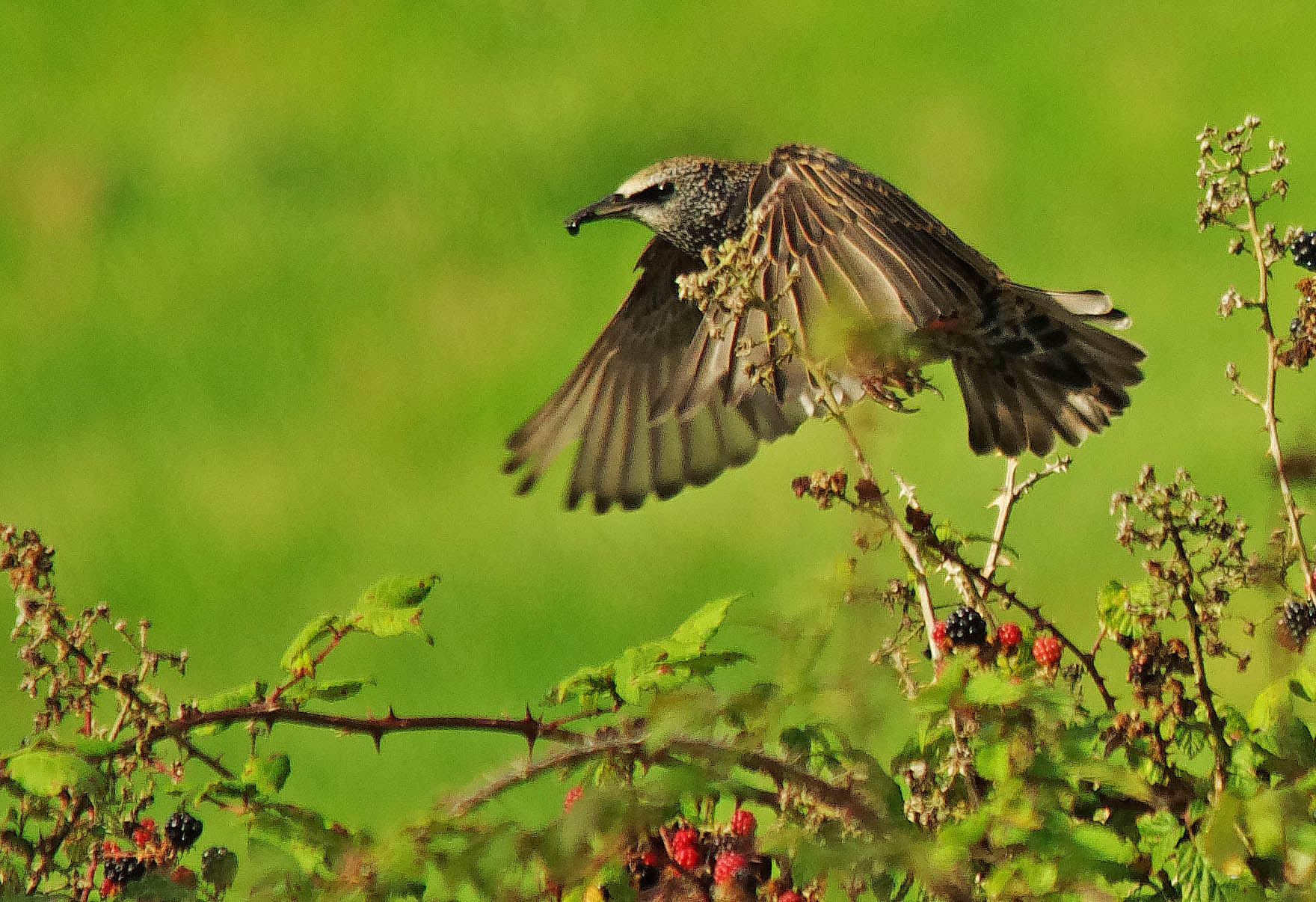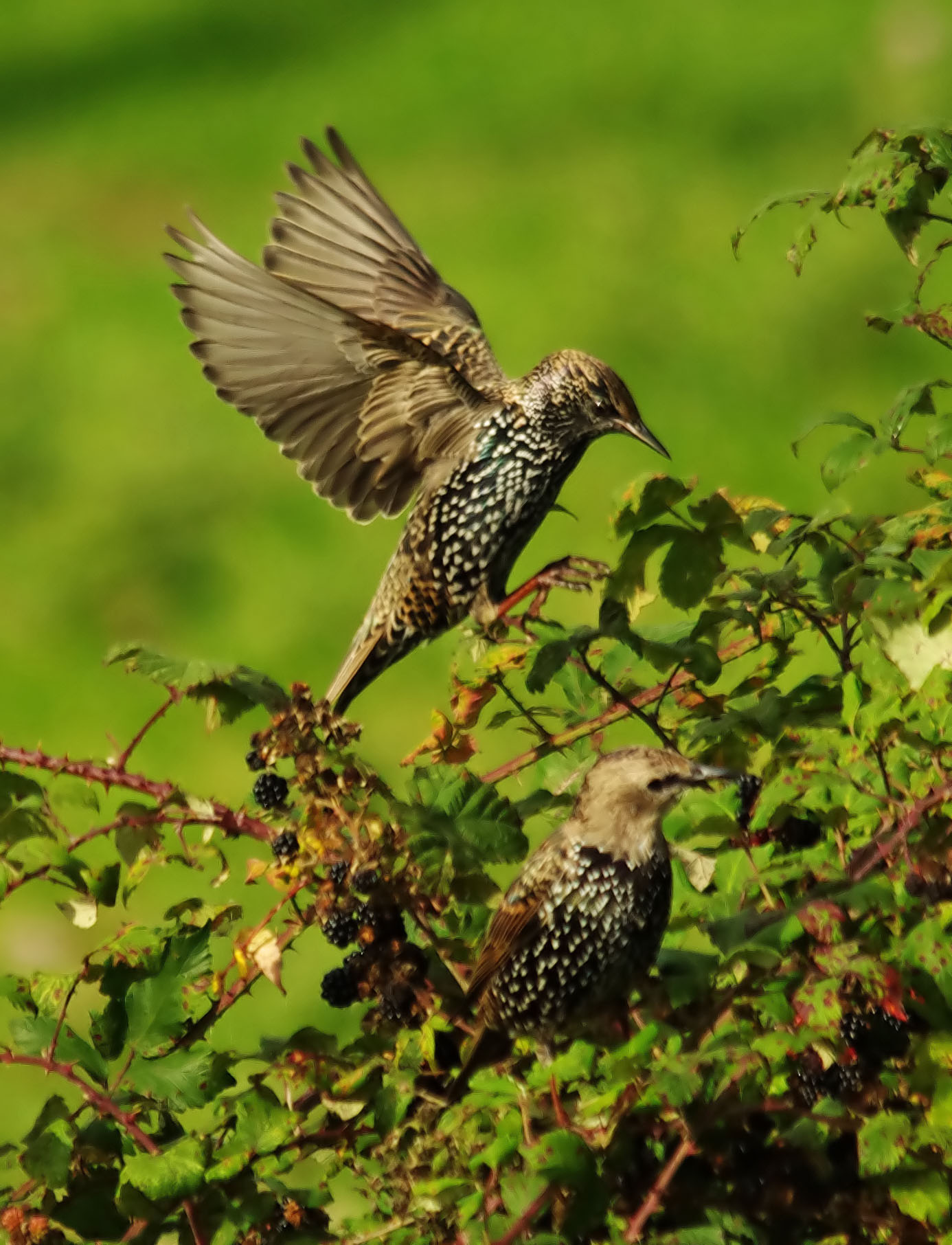 In keeping with my previous entry I have included photographs of one of our most common birds, admittedly a bird in decline but never the less familiar and commonly seen. A bird taken for granted and hardly even looked at by most people. However, I am interested in getting good photos and if the Common Starling was on the savanahs of Africa we would pay 1000's to vist to get photographs! I watched a large, noisey flock feeding on Blackberries yesterday, something I hadn't seen before and tried really hard to get photos of them flying in and out.