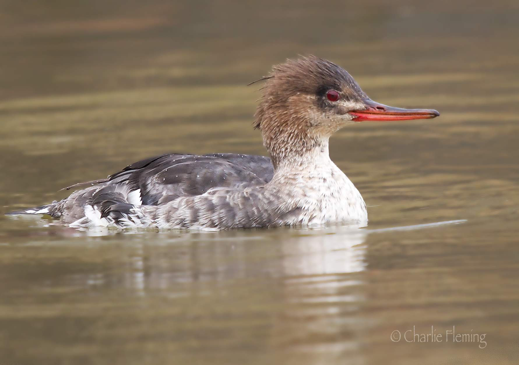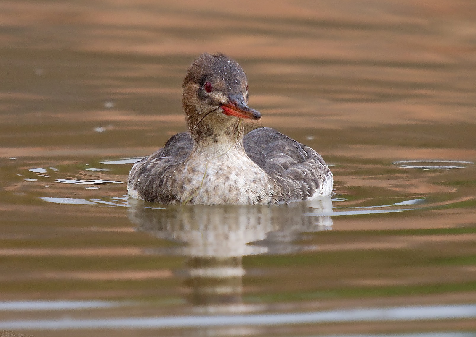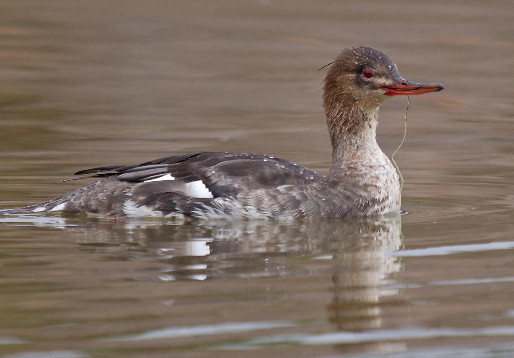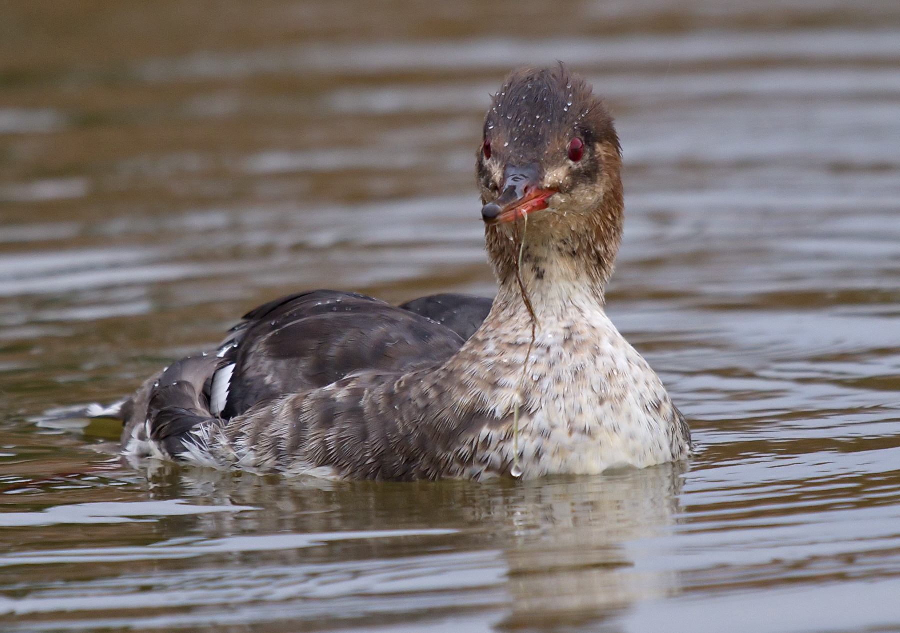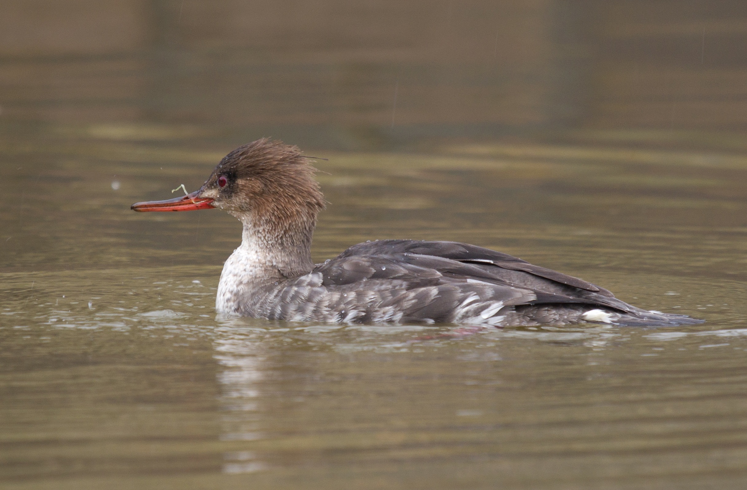 I had quite a successful session this morning even though it was damp and raining. I like a challenge and with the promise of getting photos of the Kingfisher at Turf, I thought that a dull wet day would be a good one. It certainly would quieten things down, and if I have learnt one thing about Kingfishers it is that they are easily disturbed. I was very pleased when I got to the spot where yesterday I had placed a stick over the water. The stick was wet with guano and the mud beneath was white and splattered. Reading the signs, I could tell that sometime before I had arrived a Kingfisher had been on the perch. It is tidal at this point and so it was easy to work out that the droppings were fresh. Not only had the Kingfisher been there, there was Otter tracks in the mud as well, a sure sign that an Otter had been there this morning as well. I sat down close to the perch and waited for the Kingfisher to arrive but it didn't! Typical of Kingfishers, once you think that you have it sorted they do something unexpected! But not to worry, that little spot is good for other species and the Red-breasted Merganser (brown-head) above put on quite a show. It really is exciting…… imagine you are sat quietly concealed and a photogenic bird is on it's way towards you. This particular bird has the habit of coming to fish right close in by the lock gates giving real opportunities for good photographs. I watched her…… (I do believe she is a young female)…. diving as she searched for food. I counted to myself while she was under water and tried to predict where she would surface. She was under the surface for a count of 25 to 30, this was useful to know because I could then try to predict where she is going to emerge. I was trying to catch her with prey in her beak when she surfaced and I almost did a couple of times but I suspect that she was feeding on small prey which she could swallow almost immediately. It certainly was great to photograph her. Previously I have seen males fishing there as well so,hey…it's just a matter of time and a bit of luck.