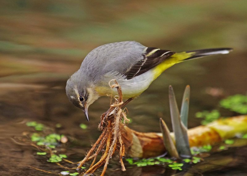 I would have liked to be able to post lots of glorious pictures this evening and it's a rare day when I haven't, but with the house full of Christmas visitors it wasn't possible however, I have a few nice garden birds to report. December last year was a cold Arctic affair and the winter Thrushes came in to garden at the end of November. By Christmas the Holly berries had been stripped from the garden tree. Today we had our first Redwings feeding in the Holly and then at the bottom of the garden, 2 Redwings were perched high on the conifer bush. The usual Blue Tits were on the feeders throughout the day as well as a Robin and two Dunnocks. But the highlight was a nice male Blackcap at lunchtime, and then presumably the same one at dusk. Blackcaps have not been as frequent in the garden this winter so far, so nice to have a male again. In the early afternoon I went and sat in the hide on the brook, hoping to get a couple of Kingfisher photos but strangely enough she wasn't there today but after a while a Grey Wagtail came along. Something spooked her unfortunatley so the picture I took is not very good but I have posted it because it clearly shows the female Wagtail that I photographed back in October. She has a white feather on her head so it's possible to recognise her. Glad that she is surviving the winter so far, will be interesting to see if she stays to pair up with the male that is in the territory.