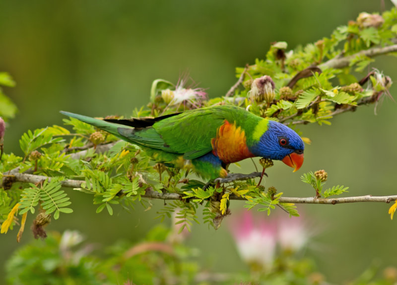 What a country Australia is, if Bee-eaters were not enough, every morning at dawn, peace would be shattered by exuberant, gaudy Rainbow Lorrikeets. They would arrive in small groups to feed on a flowering shrub close to our bedroom window, an alarm clock was definitely not required. But what photo opportunities every single morning and from your bed almost!