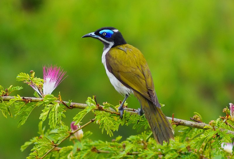 The same flowering tree attracted Honeyeaters and the Blue Faced Honeyeater was a bird that I really enjoyed. Here it is feeding at first light on the same tree as the Rainbow Lorrikeet.